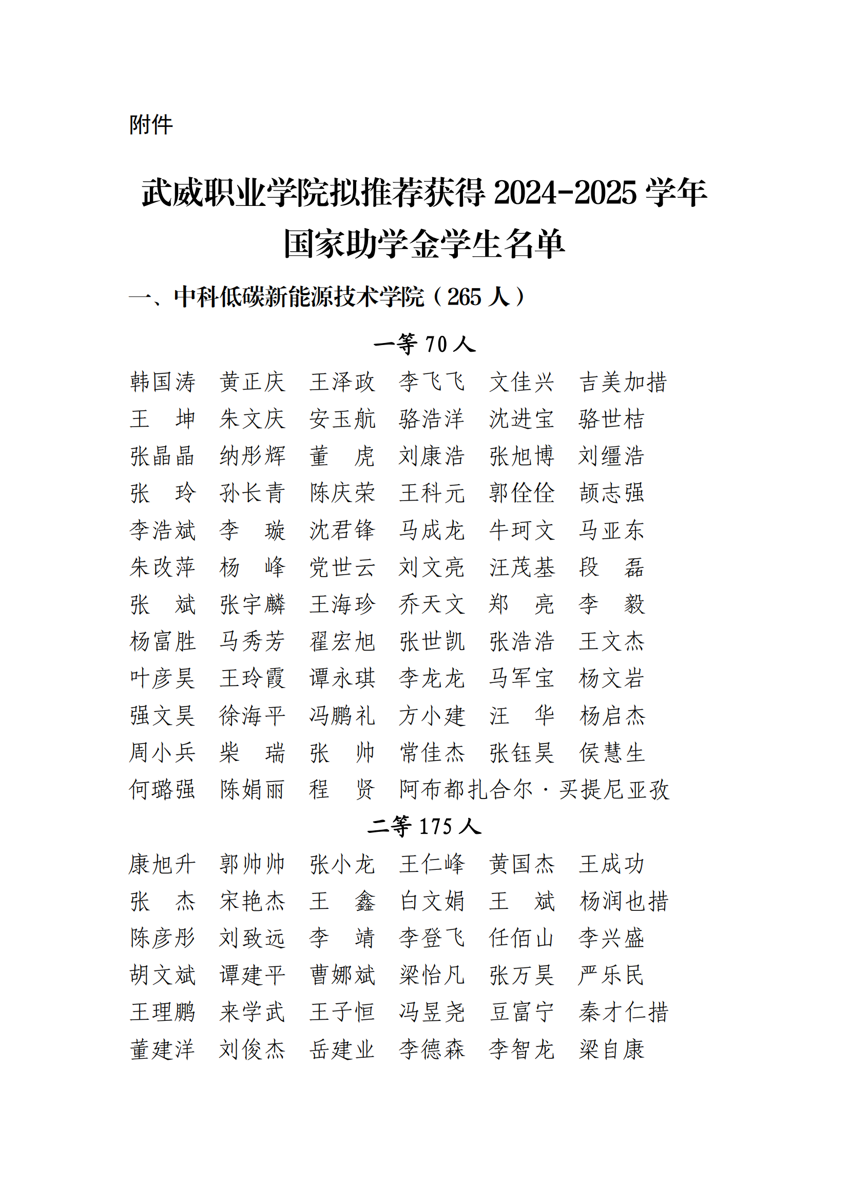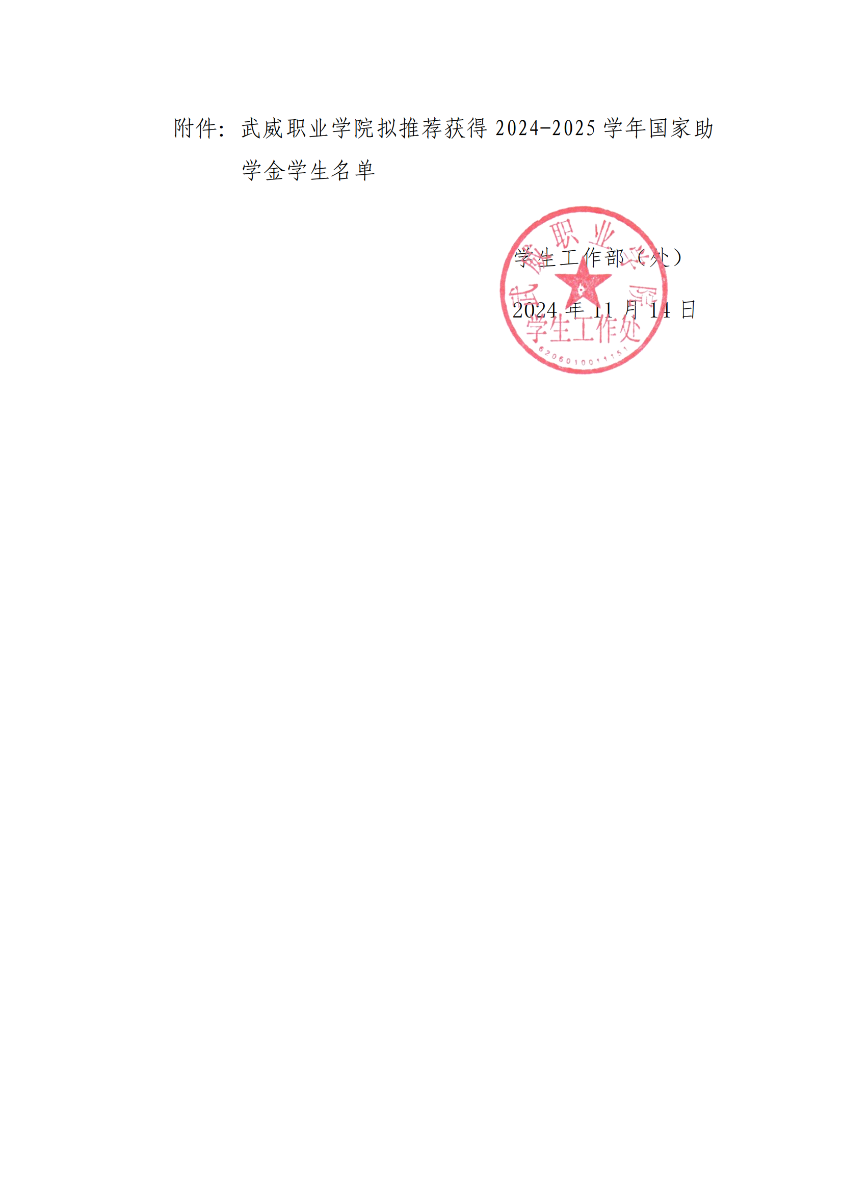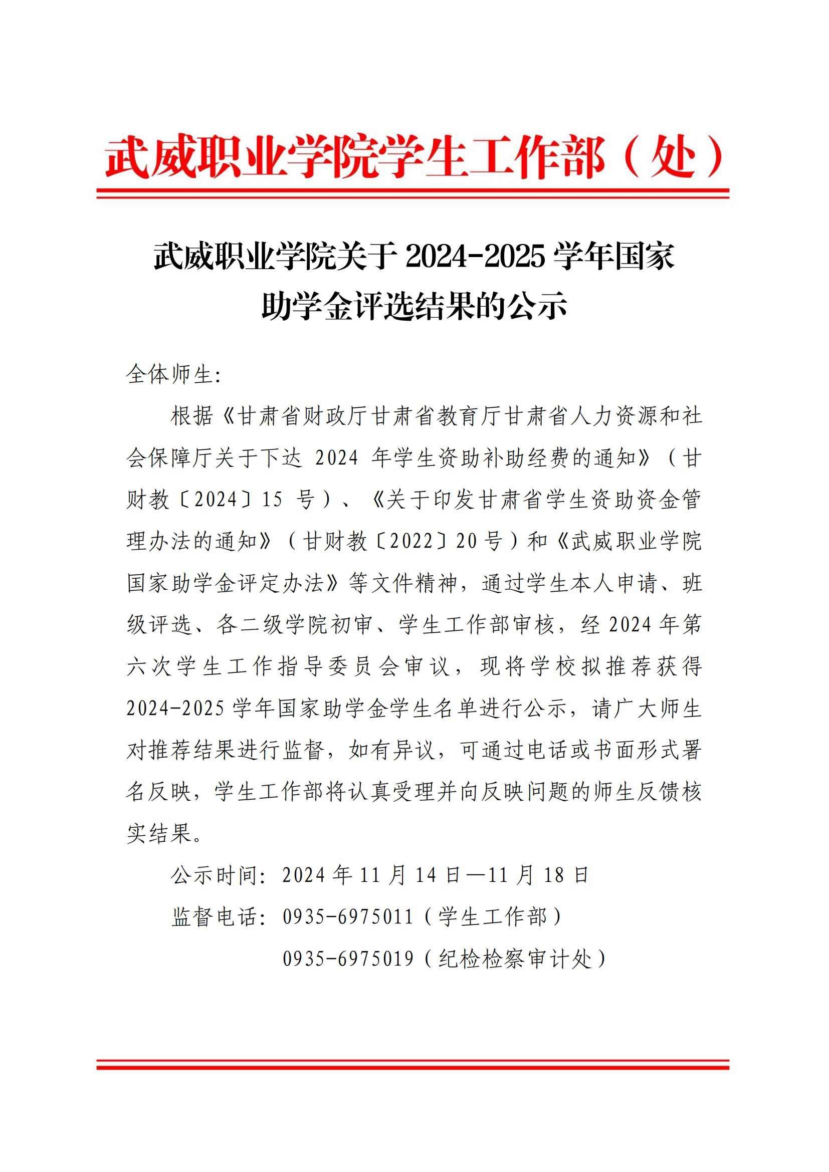 武威職業(yè)學(xué)院關(guān)于2024-2025學(xué)年國家助學(xué)金評(píng)選結(jié)果的公示
