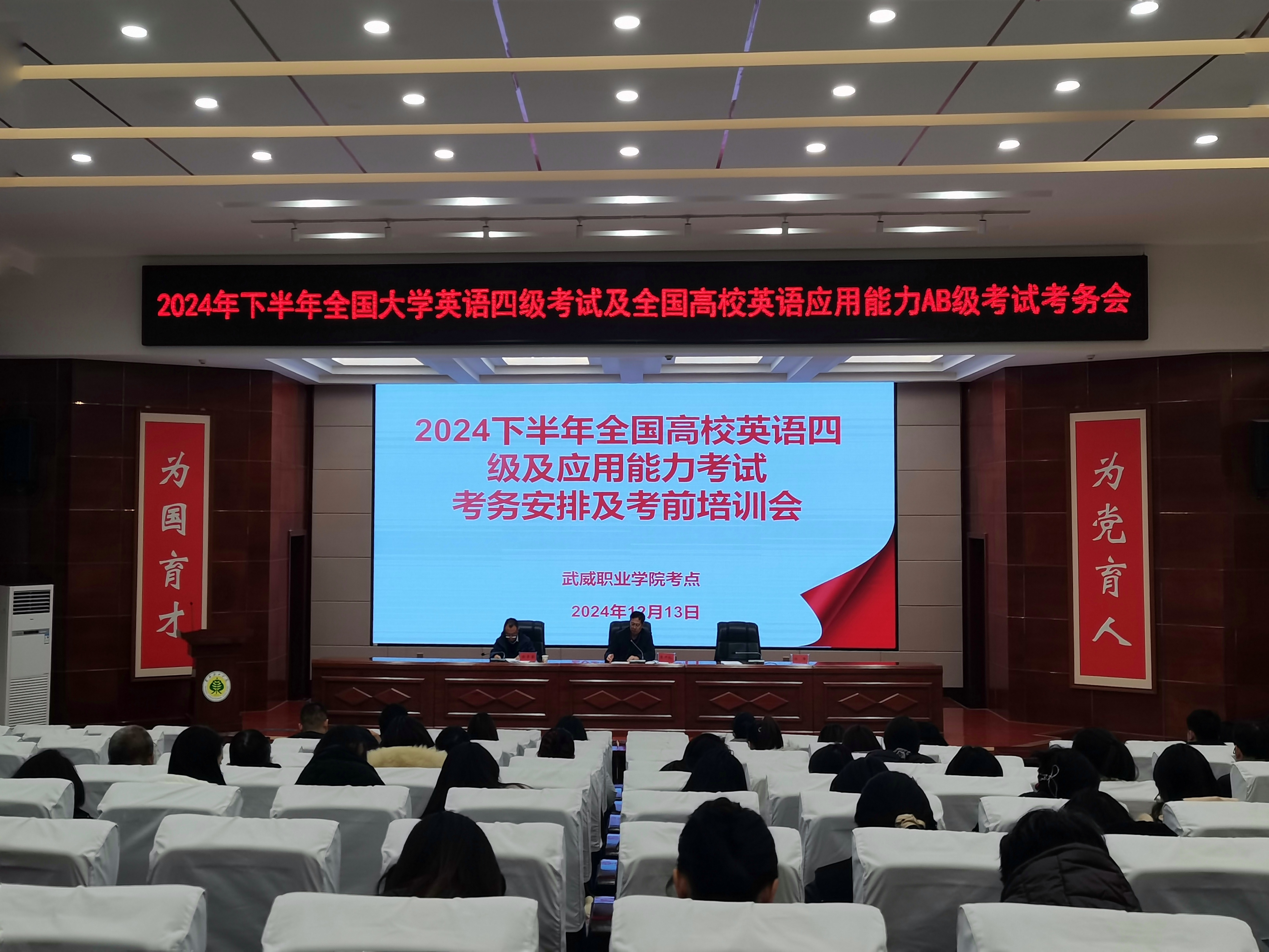 12月13日下午,在菁英廳召開了全國(guó)大學(xué)生英語(yǔ)四級(jí)暨全國(guó)高校英語(yǔ)應(yīng)用能力AB級(jí)考試的考務(wù)安排及考前培訓(xùn)會(huì)議。會(huì)上,黨委副書記、副校長(zhǎng)張開禮強(qiáng)調(diào)了考試紀(jì)律的重要性,要求所有監(jiān)考人員和考生嚴(yán)格遵守考試規(guī)定,確??荚嚨墓?、公正和順利進(jìn)行。培訓(xùn)考試中心主任顏魯薪就考試的各項(xiàng)具體事宜進(jìn)行了詳細(xì)安排,包括考試流程、考場(chǎng)布置、試卷分發(fā)與回收等環(huán)節(jié),確??荚嚬ぷ鞯挠行蜻M(jìn)行。