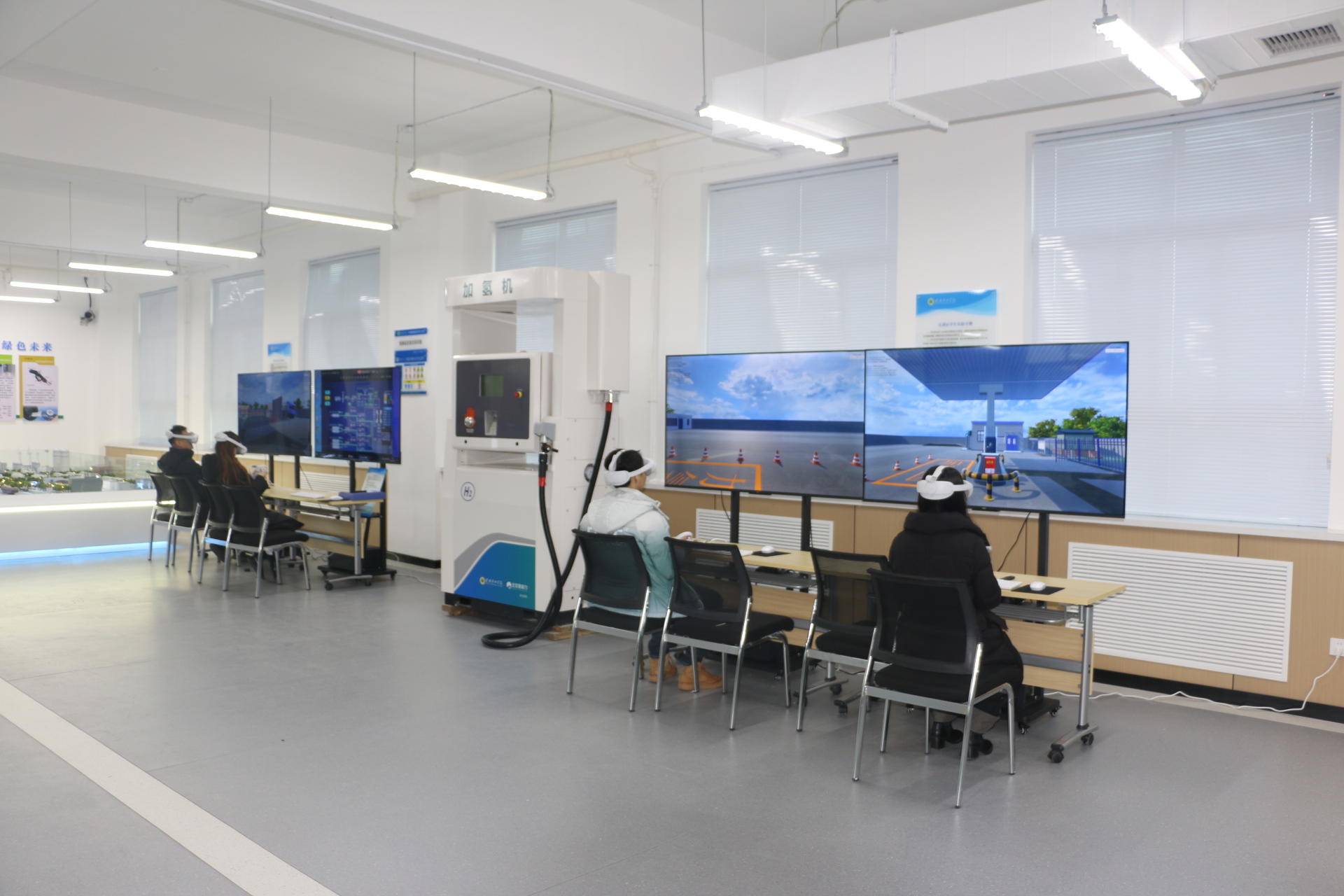 本實訓(xùn)室配備了1臺加氫機和4臺虛擬現(xiàn)實(VR)設(shè)備,能夠開展加氫站結(jié)構(gòu)認(rèn)知實訓(xùn)、加氫站工作流程實訓(xùn)、加氫站設(shè)備運行維護實訓(xùn)以及加氫站安全管理實訓(xùn)等項目。借助這些實訓(xùn)項目,學(xué)生可以詳細(xì)了解加氫站、加氫機以及加氫槍的結(jié)構(gòu)、加氫工作流程、加氫安全管理以及加氫設(shè)備運行維護等方面的知識,從而為將來從事加氫站相關(guān)工作筑牢堅實的基礎(chǔ)。