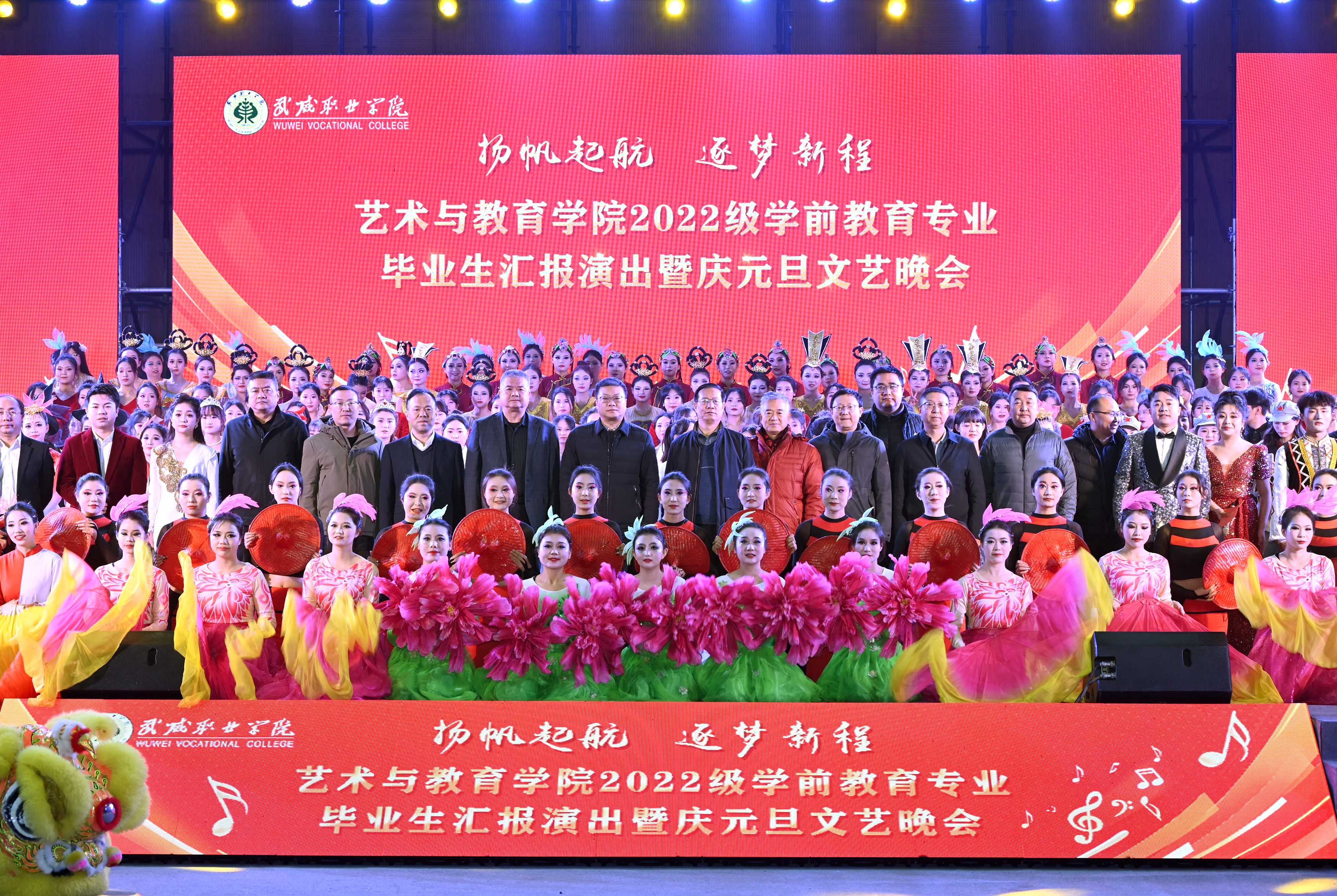 12月23日晚,藝術與教育學院2022級學前教育專業(yè)畢業(yè)生匯報演出暨慶元旦文藝晚會在學校體育館隆重舉行。校長李海軍,黨委副書記、副校長張開禮,黨委委員、副校長王守云出席晚會。學校各部門、二級學院負責人及師生2000余人觀看了演出。