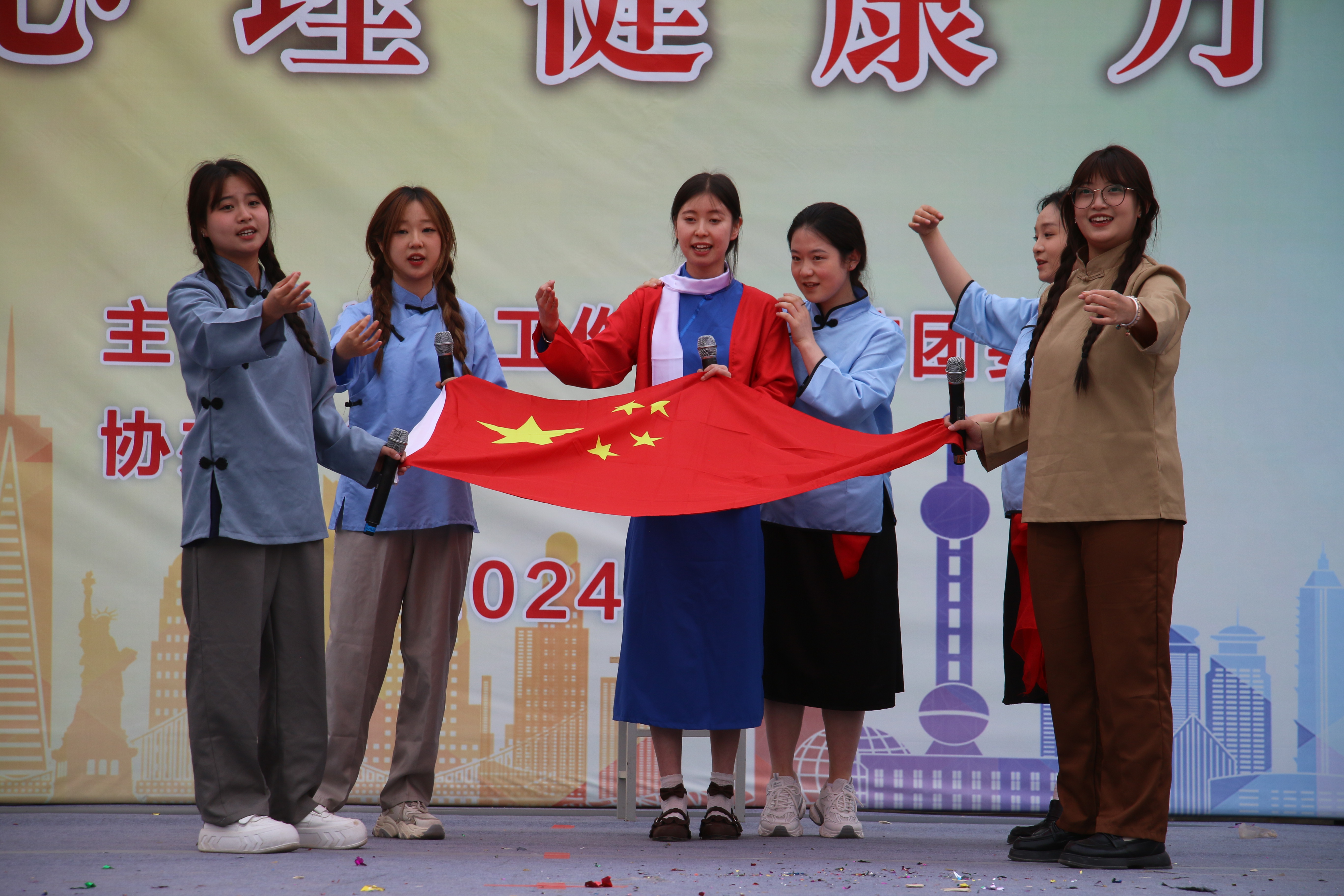 活動(dòng)現(xiàn)場,各學(xué)生社團(tuán)為現(xiàn)場觀眾帶來了20多個(gè)精彩紛呈的文藝節(jié)目,合唱、舞蹈、戲劇、小品、詩朗誦等形式輪番上陣,內(nèi)容豐富多彩,主題陽光向上,充分展示了學(xué)生社團(tuán)的青春魅力;各學(xué)生社團(tuán)還增加了如幸運(yùn)大轉(zhuǎn)盤、套圈、手工DIY、成語接龍、謎語競猜等一系列有趣好玩的互動(dòng)游戲,充分展示了我校學(xué)生社團(tuán)活動(dòng)特色。活動(dòng)現(xiàn)場還設(shè)置了拍照打卡墻,吸引眾多師生參與其中拍照打卡留念,現(xiàn)場到處洋溢著歡樂的氣氛。同時(shí),文化節(jié)開幕式活動(dòng)全程進(jìn)行了抖音直播,觀看人次達(dá)到1萬余人次,點(diǎn)贊突破5000人次,進(jìn)一步擴(kuò)大了社團(tuán)影響力。