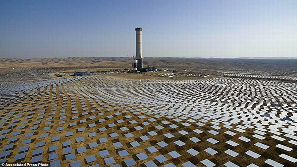 以色列內(nèi)蓋夫沙漠上5萬個(gè)日光反射鏡面環(huán)繞一座太陽能塔,該太陽能塔高度為250米。目前,在以色列晴朗天氣,太陽能利用率非常低,未來這項(xiàng)以色列最大的再生能源項(xiàng)目將具有較好的應(yīng)用前景,預(yù)計(jì)2018年建造完成。