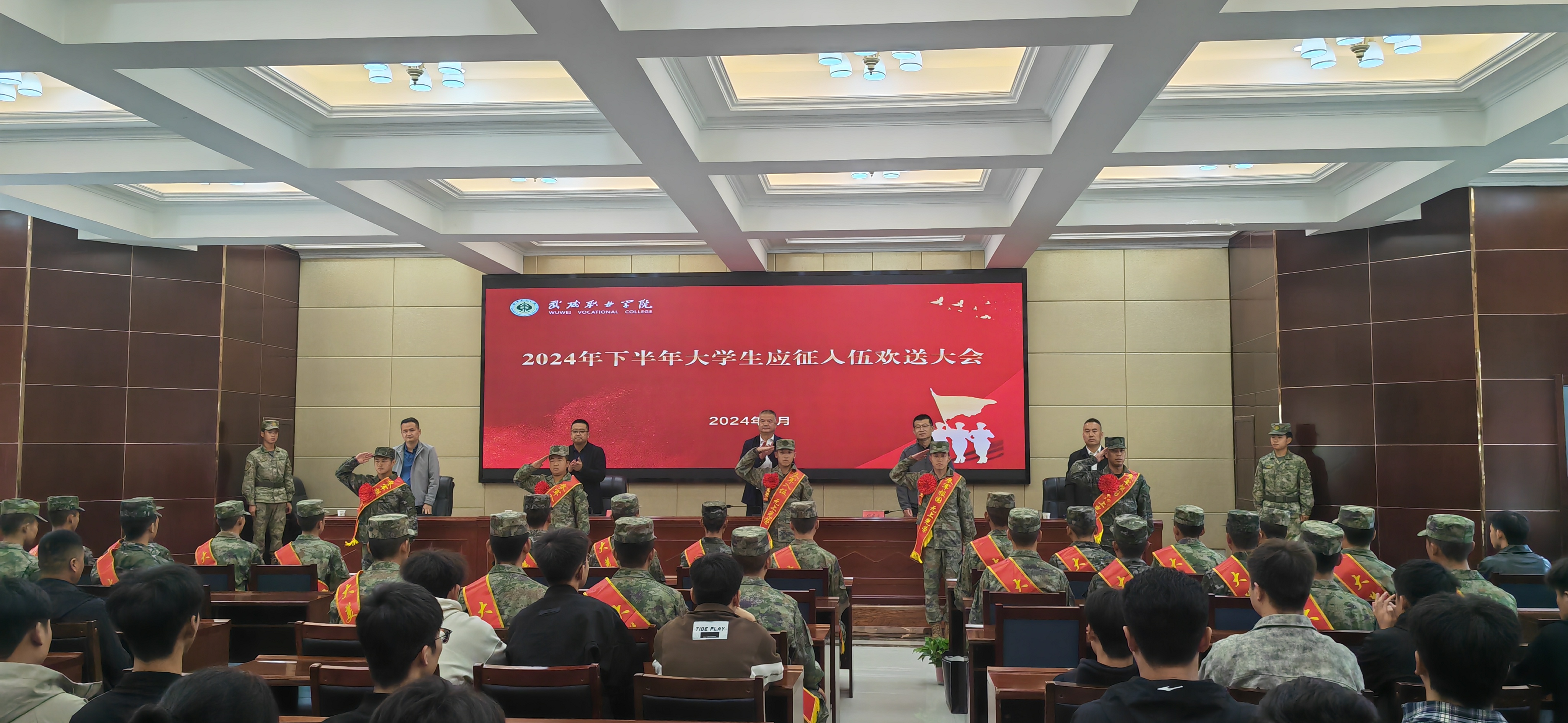 學(xué)校熱烈歡送2024年下半年應(yīng)征入伍大學(xué)生