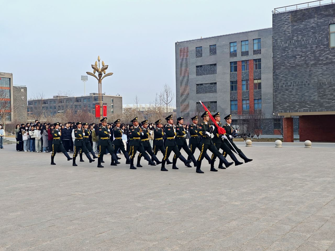 隨著激昂的國歌響起,英姿颯爽的國旗護(hù)衛(wèi)隊(duì)邁著整齊有力的步伐,護(hù)送五星紅旗走向升旗臺(tái)。在全體師生莊嚴(yán)肅穆的注目下,鮮艷的五星紅旗迎著朝陽冉冉升起,隨風(fēng)飄揚(yáng)。這一刻,現(xiàn)場(chǎng)每一個(gè)人心中的愛國之情都被深深點(diǎn)燃。