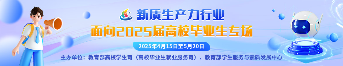 為整合新質(zhì)生產(chǎn)力行業(yè)的崗位資源,優(yōu)化行業(yè)人才供需對(duì)接,搭建產(chǎn)業(yè)和人才培養(yǎng)交流的溝通平臺(tái),特開(kāi)展“新質(zhì)生產(chǎn)力行業(yè)面向2025屆高校畢業(yè)生專場(chǎng)”。