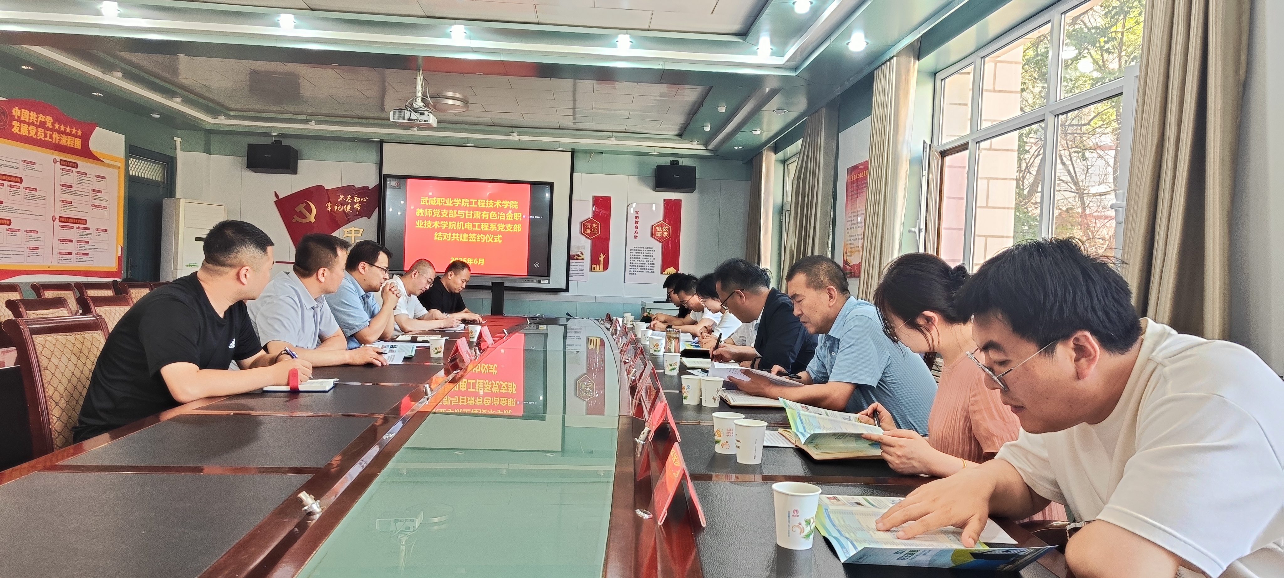 為進(jìn)一步加強(qiáng)黨組織建設(shè),提升黨員的政治素養(yǎng)和黨性修養(yǎng),6月11日,學(xué)校工程技術(shù)學(xué)院教師黨支部和甘肅有色冶金職業(yè)技術(shù)學(xué)院機(jī)電工程系黨支部結(jié)對共建簽約儀式在博學(xué)樓黨員活動室舉行。甘肅有色冶金職業(yè)技術(shù)學(xué)院組織部部長高立兵、督導(dǎo)中心主任趙登峰、機(jī)電工程系黨支部書記侯婷婷,學(xué)校工程技術(shù)學(xué)院黨總支書記王鐸云、副院長徐生龍出席儀式,雙方黨員共計20人參加儀式。