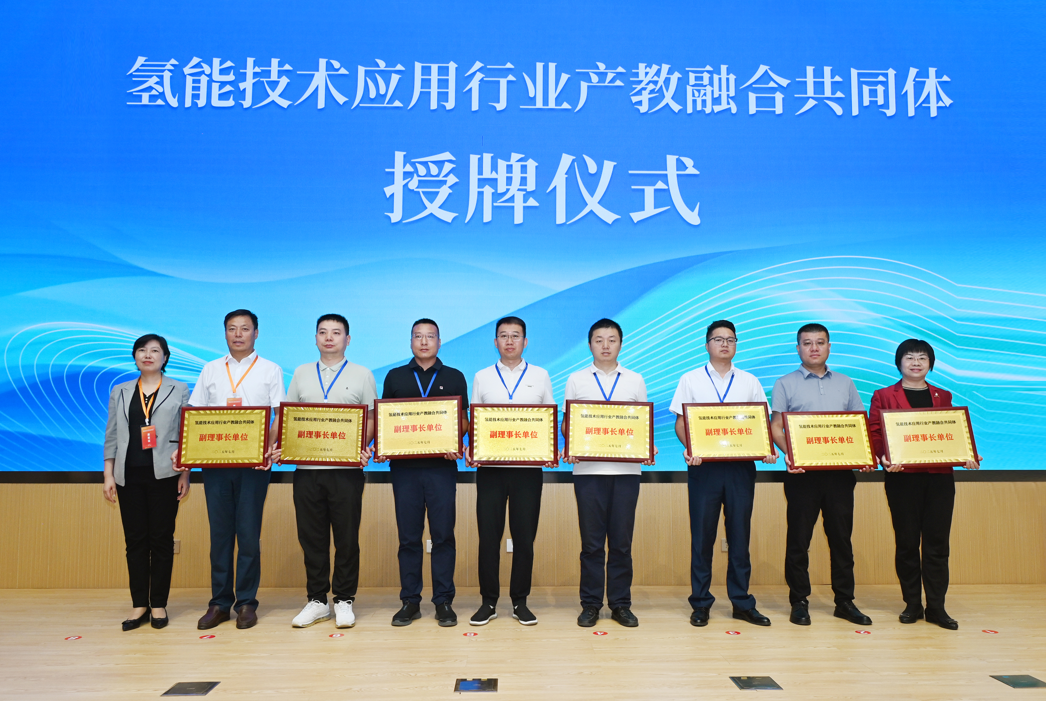 啟動儀式上,與會領(lǐng)導共同點亮啟動球,宣布氫能技術(shù)應用行業(yè)產(chǎn)教融合共同體正式成立。大會公布了共同體理事會成員單位名單,并為理事長單位、副理事長單位授牌。