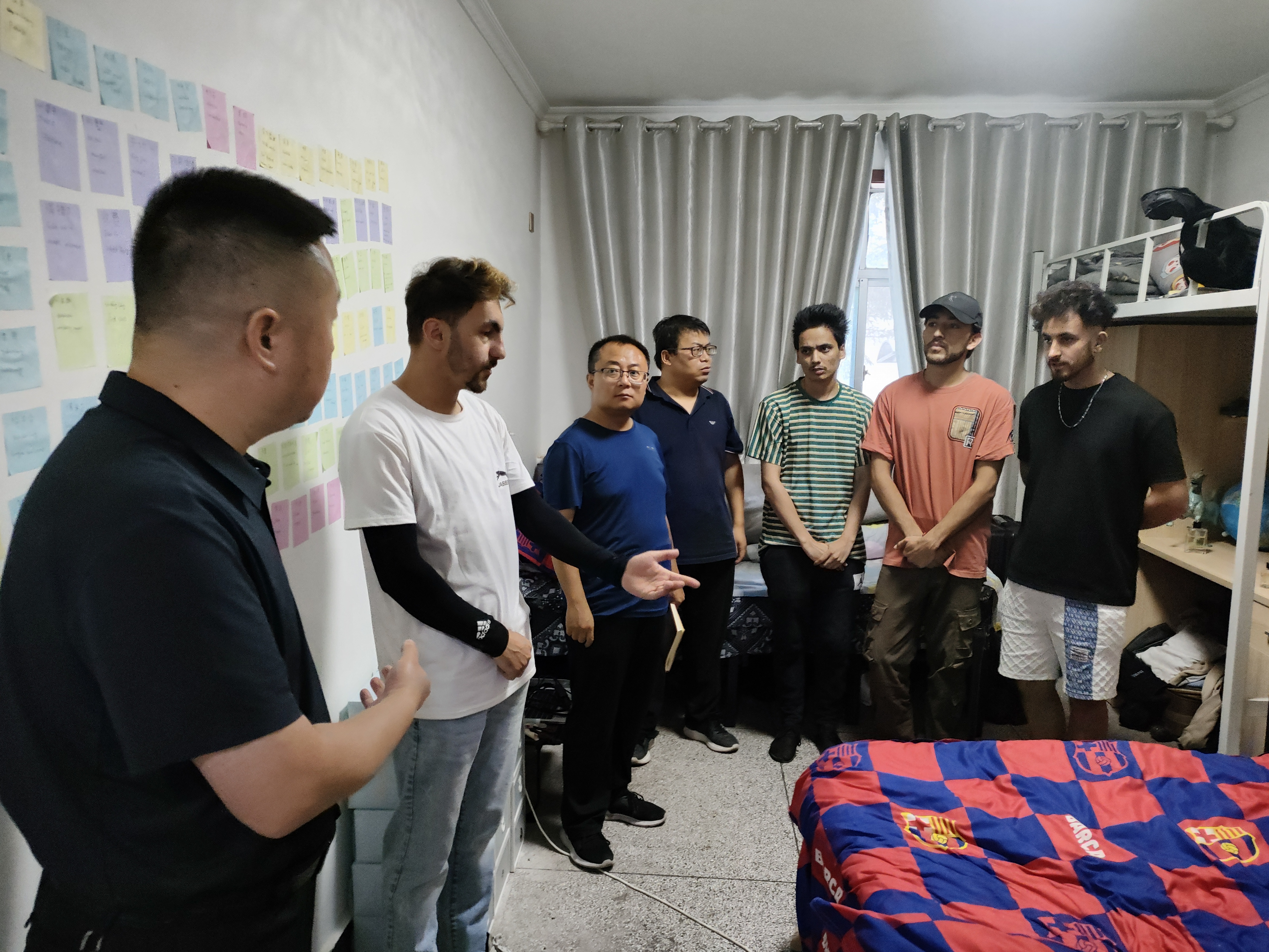 在新學(xué)期開學(xué)之際,國際合作交流處負責人帶領(lǐng)部門全體教師深入留學(xué)生宿舍,開展安全衛(wèi)生專項檢查,實地了解留學(xué)生開學(xué)準備情況。