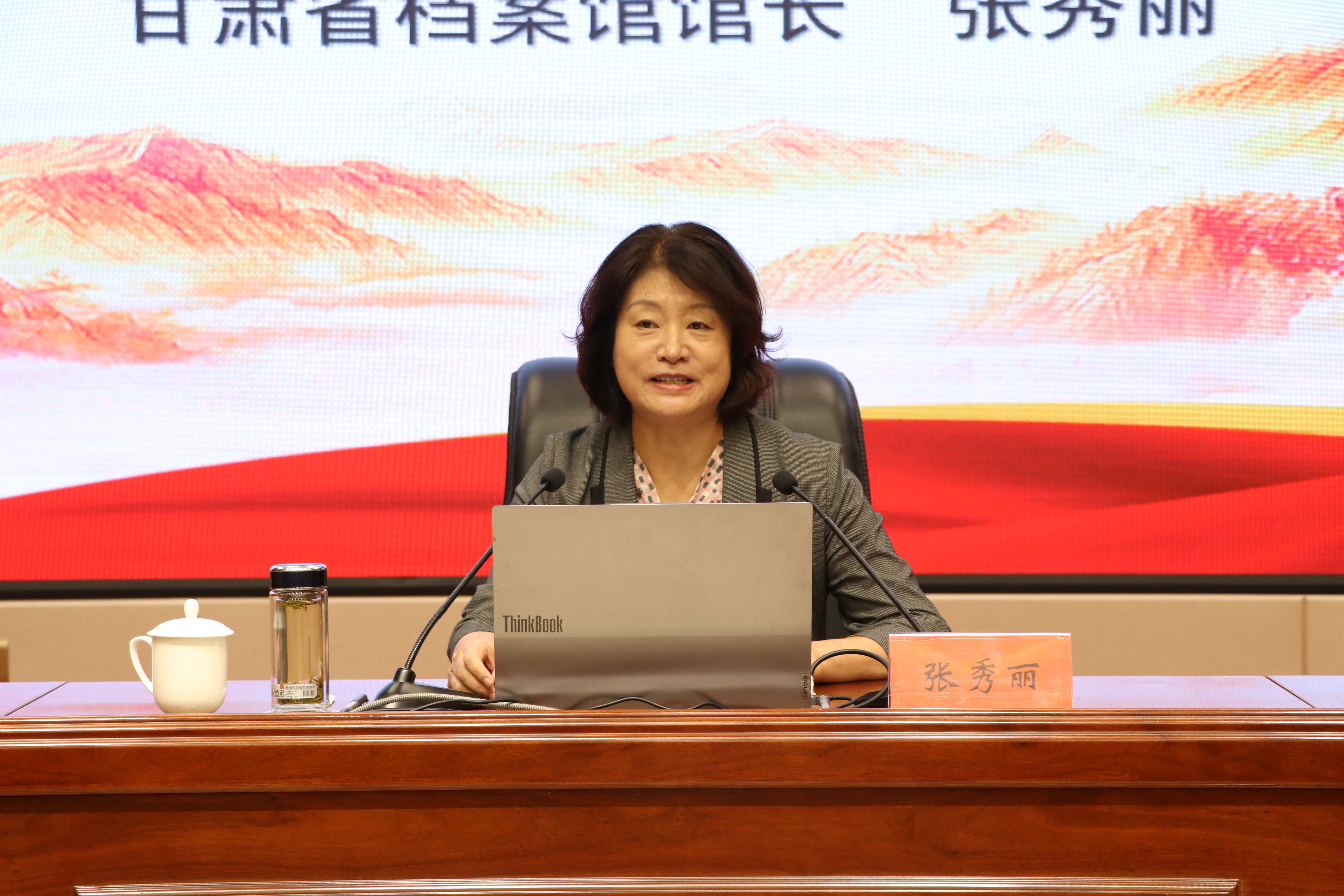 張秀麗結(jié)合自身從事檔案管理和文化研究的豐富經(jīng)驗(yàn),從檔案“存史、資政、育人”根本任務(wù)出發(fā),通過大量珍貴檔案文獻(xiàn)和歷史案例,系統(tǒng)闡述了檔案在記錄民族苦難輝煌、服務(wù)當(dāng)代治國理政、培育時代新人中的重要作用。報告中,她以館藏漢代簡牘、革命烈士叢德滋00001號烈屬證、民勤治沙檔案、甘肅地震檔案等一批具有歷史代表性和地域特色的檔案為載體,帶領(lǐng)師生穿越時空,感受中華民族生生不息的精神力量,深刻解讀“勿忘昨天的苦難輝煌,無愧今天的使命擔(dān)當(dāng),不負(fù)明天的偉大夢想”的時代內(nèi)涵。