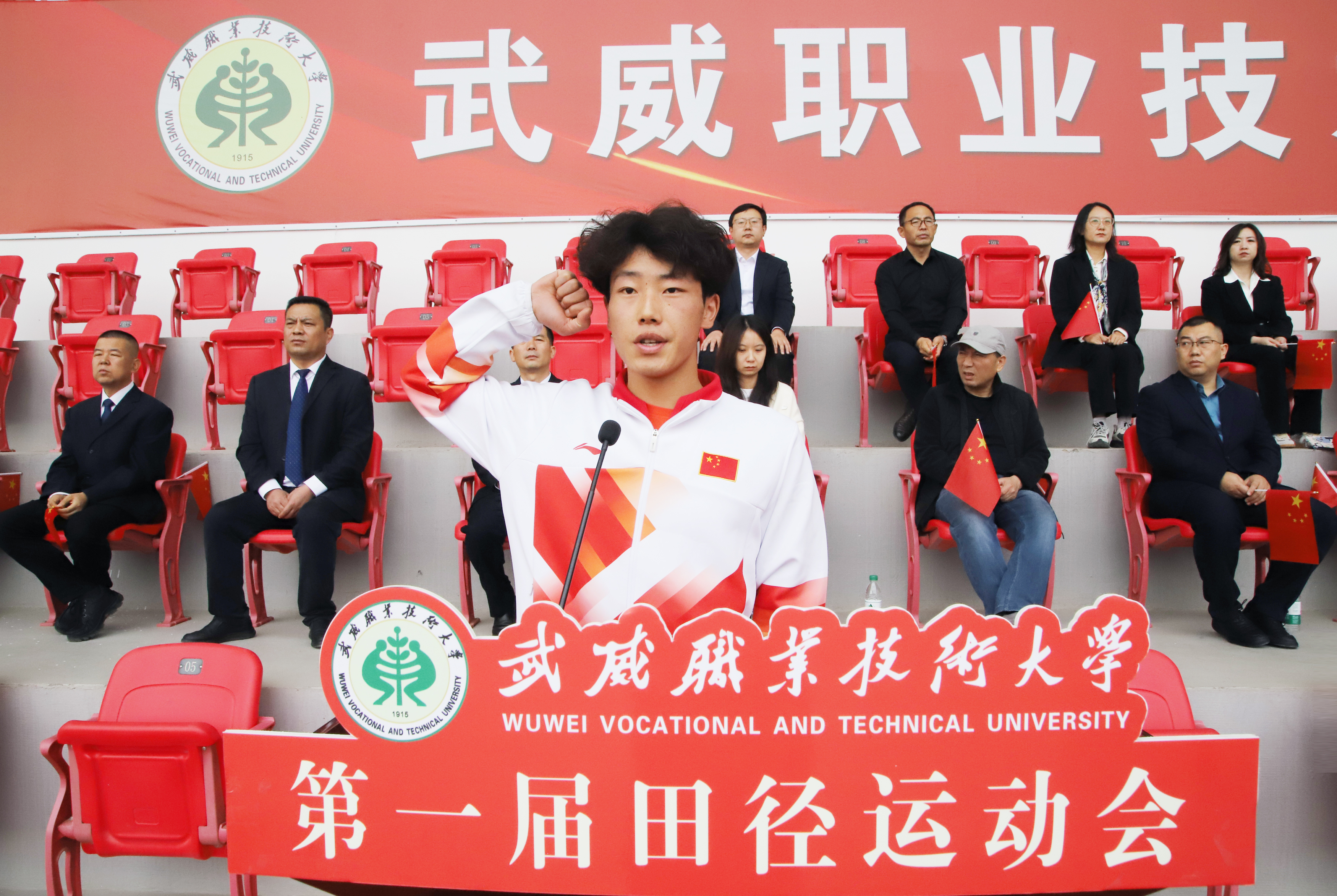 王宏宣布武威職業(yè)技術(shù)大學(xué)第一屆田徑運動會開幕。