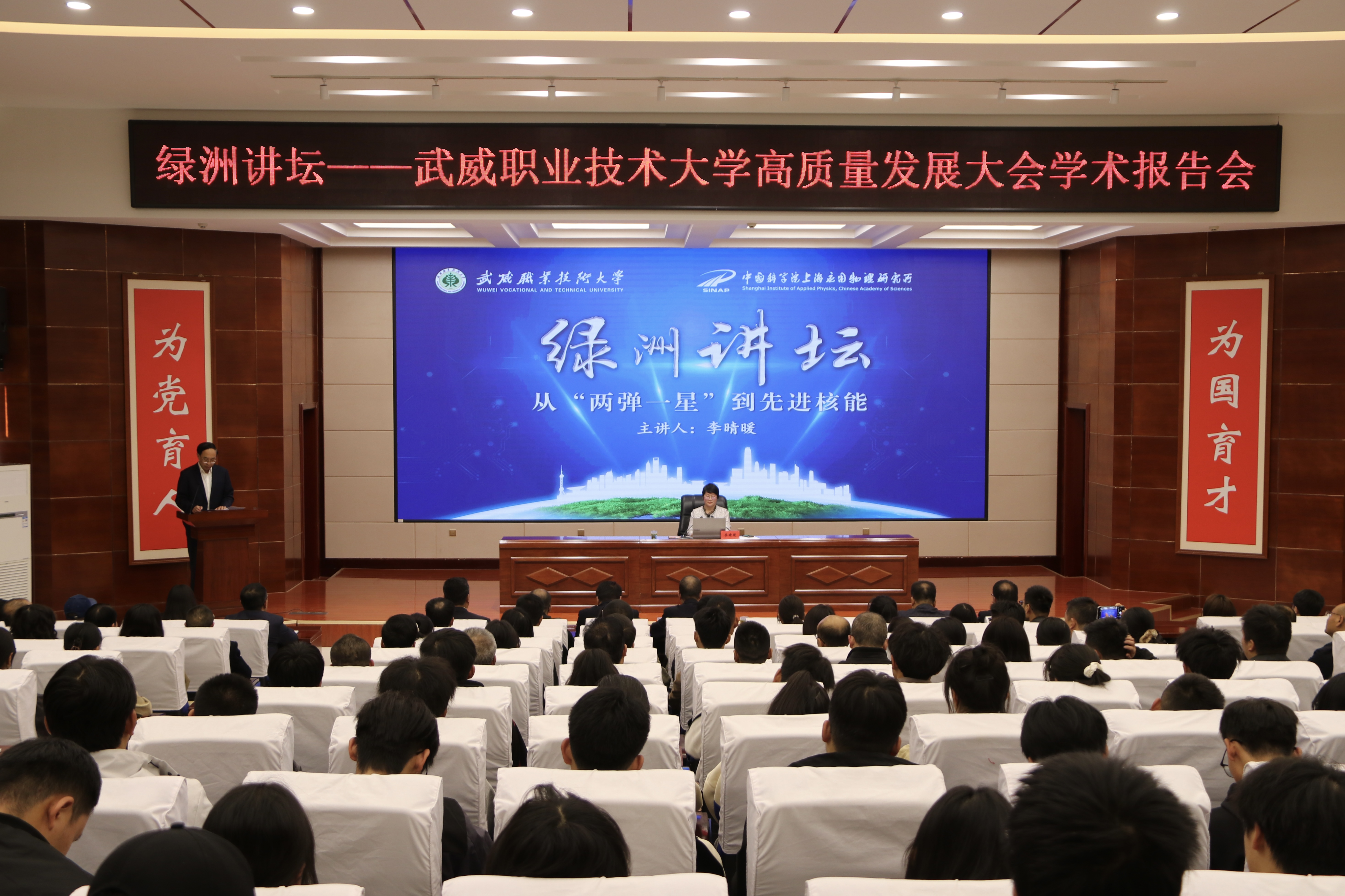 10月12日下午,中國(guó)科學(xué)院上海應(yīng)用物理研究所黨委書記、副所長(zhǎng)李晴暖研究員,受邀做客武威職業(yè)技術(shù)大學(xué)“綠洲講壇”,以《從“兩彈一星”到先進(jìn)核能》為題,為該校220余名師生代表帶來(lái)專題學(xué)術(shù)報(bào)告。