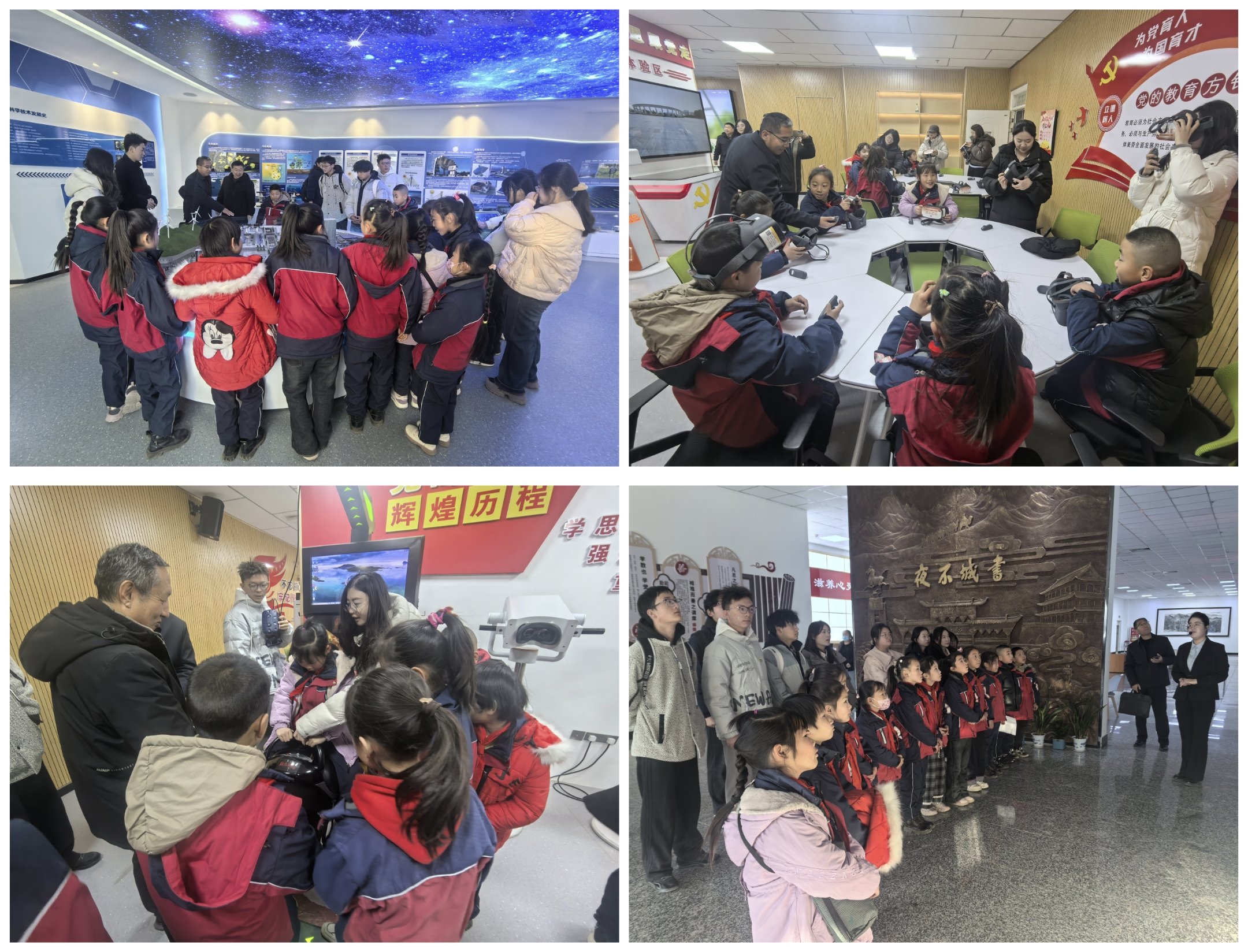 共建簽約儀式后,學生們參觀了學校圖書館、新能源科技館、課程思政教學研究示范中心等場館。孩子們穿梭于書香四溢的閱覽區(qū),駐足于各種先進的模型與互動裝置前,直觀感受VR技術(shù)賦能思政課堂的創(chuàng)新魅力,眼神中充滿了對知識的渴望與探索,這次參觀不僅是一次校園環(huán)境體驗,更是一次深刻的“潤物細無聲”思政教育,在孩子們心中播下了求知與創(chuàng)新的種子。