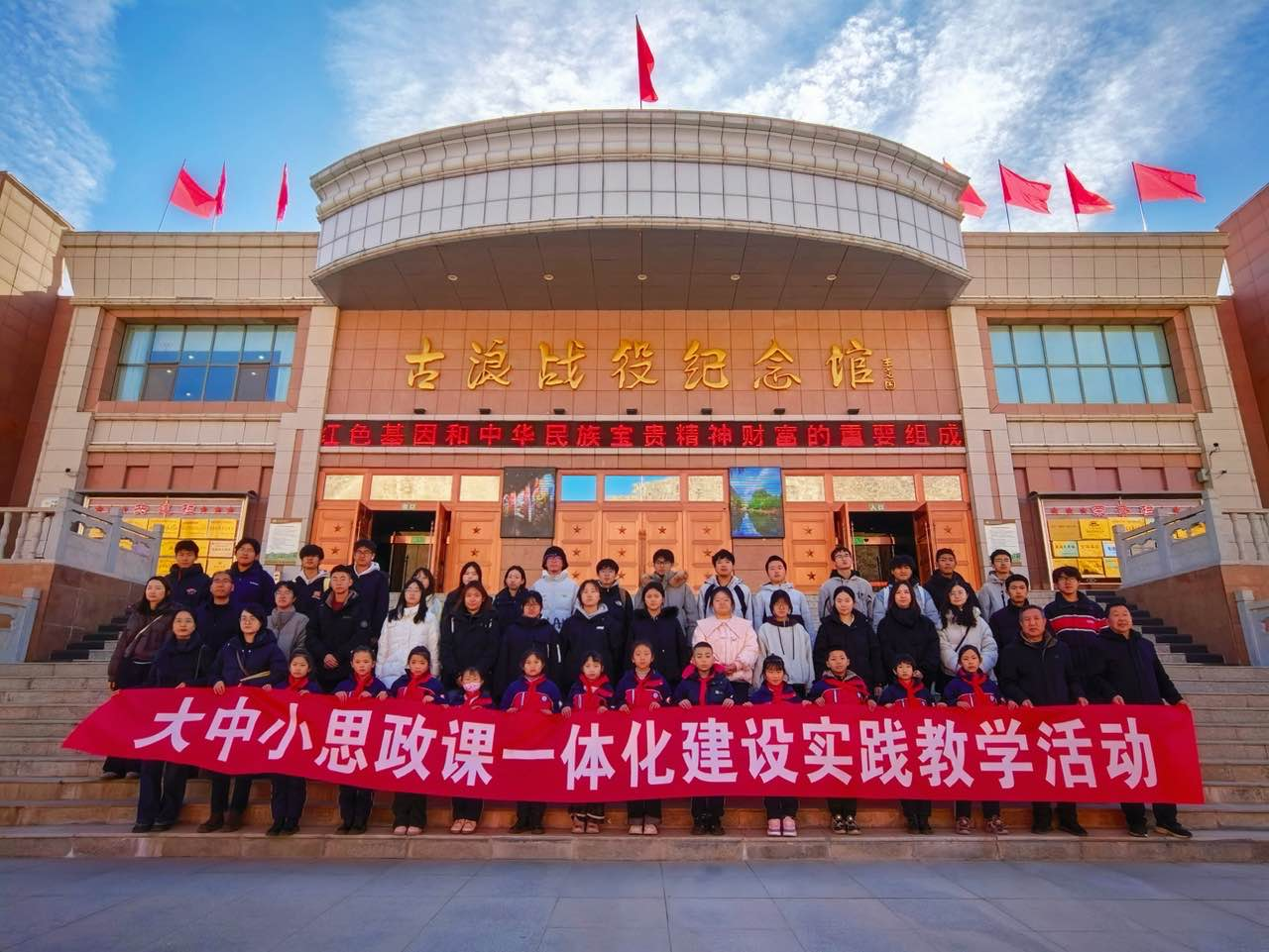 校園參觀結(jié)束,雙方共同前往學?!按笏颊n”實踐教學基地---古浪戰(zhàn)役紀念館,開展了一場生動而深刻的“大思政課”實踐教學活動。在莊嚴肅穆的紀念館內(nèi),全體人員通過觀看歷史文物、聆聽現(xiàn)場講解、緬懷革命先烈,深刻感悟了紅色江山的來之不易,接受了偉大的革命精神洗禮。