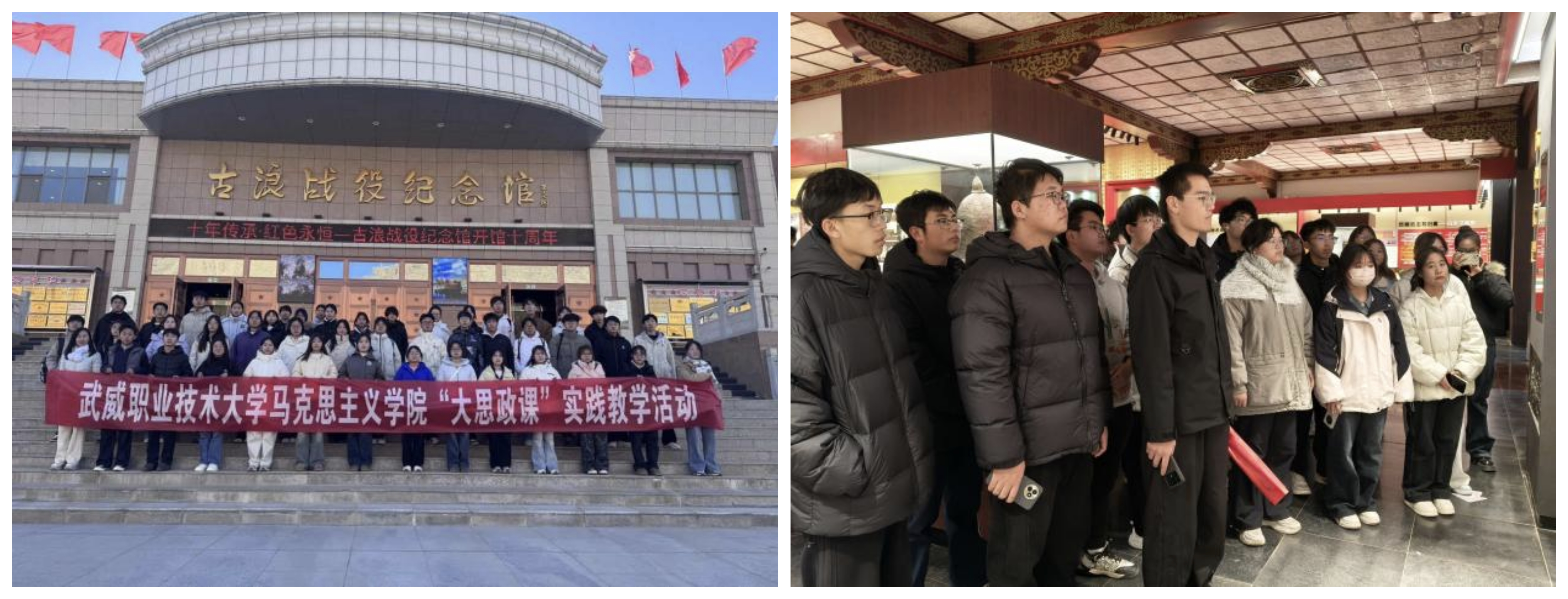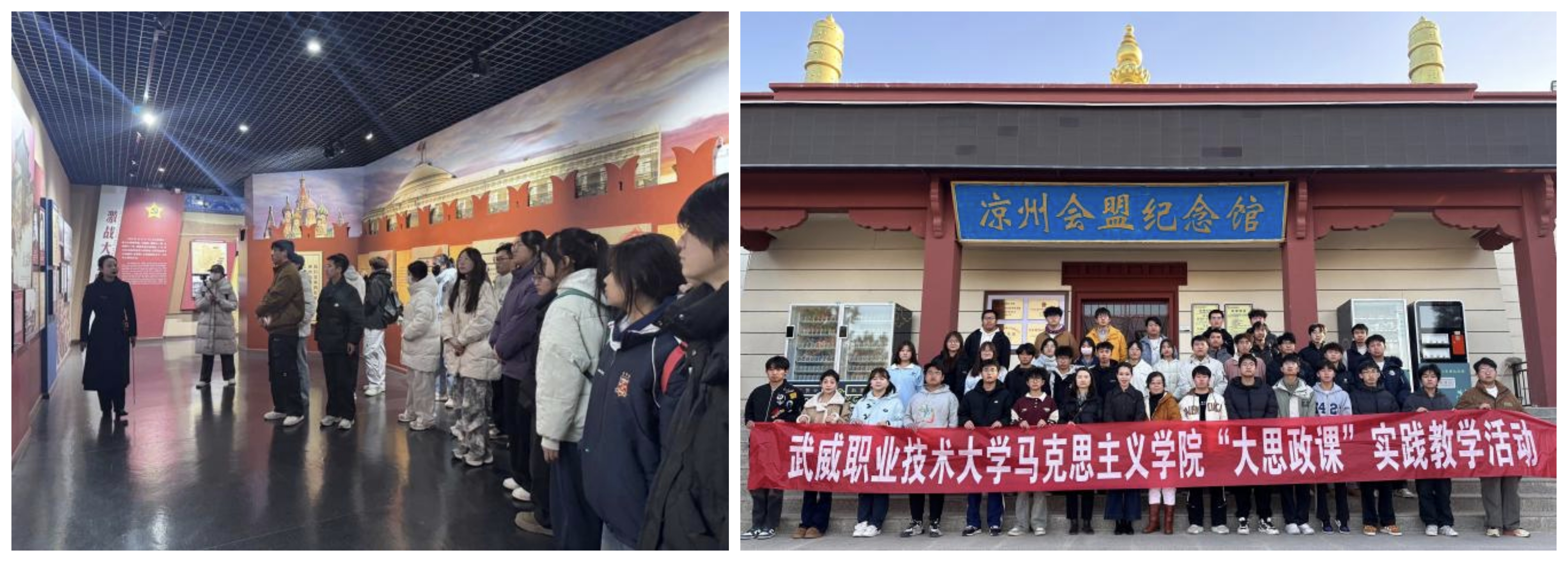 為深入推進“大思政課”建設(shè),創(chuàng)新實踐育人模式,引導(dǎo)學(xué)生在實踐中感悟思想偉力、砥礪奮斗精神,11月21日—28日,馬克思主義學(xué)院分三個批次組織首批本科專業(yè)學(xué)生前往實踐教學(xué)基地古浪戰(zhàn)役紀(jì)念館和涼州會盟紀(jì)念館,開展了一場深刻而生動的“行走的思政課”實踐教學(xué)活動。