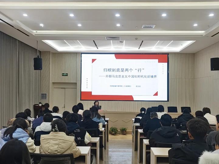 教學(xué)觀摩活動(dòng)以“歸根到底是兩個(gè)行——開辟馬克思主義中國(guó)化時(shí)代化新境界”為題,從“真理之光:馬克思主義行”“實(shí)踐之行:中國(guó)化時(shí)代化的馬克思主義行”“復(fù)興之路:不斷開辟馬克思主義中國(guó)化時(shí)代化新境界”三部分展開講述,她從“兩個(gè)行”這一重大論斷的理論溯源、時(shí)代背景與核心要義切入,結(jié)合新時(shí)代以來的偉大實(shí)踐與歷史性變革,深刻揭示了中國(guó)共產(chǎn)黨為什么能、中國(guó)特色社會(huì)主義為什么好的理論邏輯與實(shí)踐密碼,生動(dòng)回答中國(guó)之問、世界之問、人民之問、時(shí)代之問,實(shí)現(xiàn)了馬克思主義中國(guó)化時(shí)代化新的飛躍。她強(qiáng)調(diào),“兩個(gè)行”是相互貫通、有機(jī)統(tǒng)一的整體,開辟馬克思主義中國(guó)化時(shí)代化新境界,必須始終堅(jiān)持“兩個(gè)行”的根本遵循,在實(shí)踐中不斷推進(jìn)理論創(chuàng)新,并用發(fā)展著的理論指導(dǎo)新的實(shí)踐。