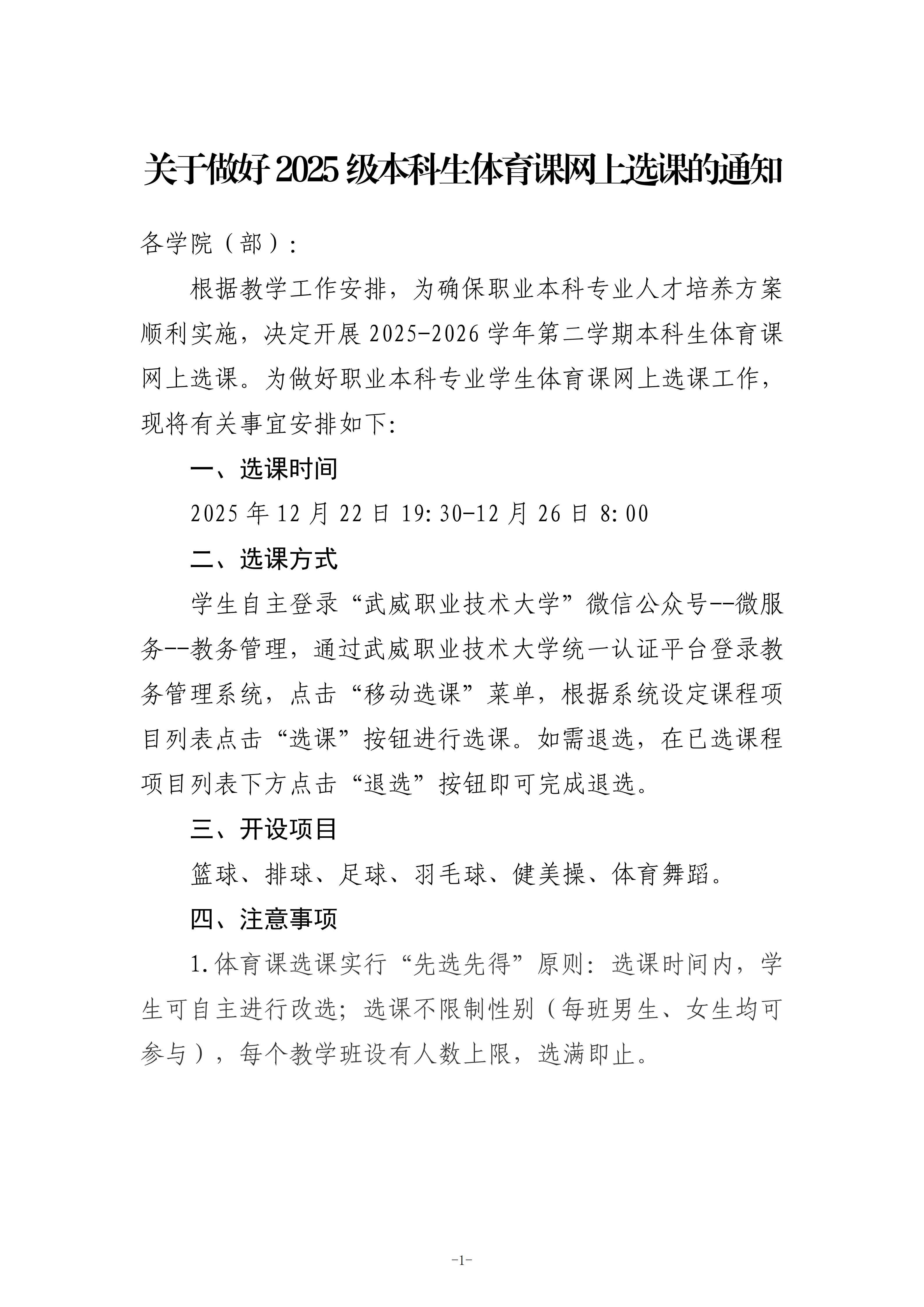 關(guān)于做好2025級本科生體育課網(wǎng)上選課的通知