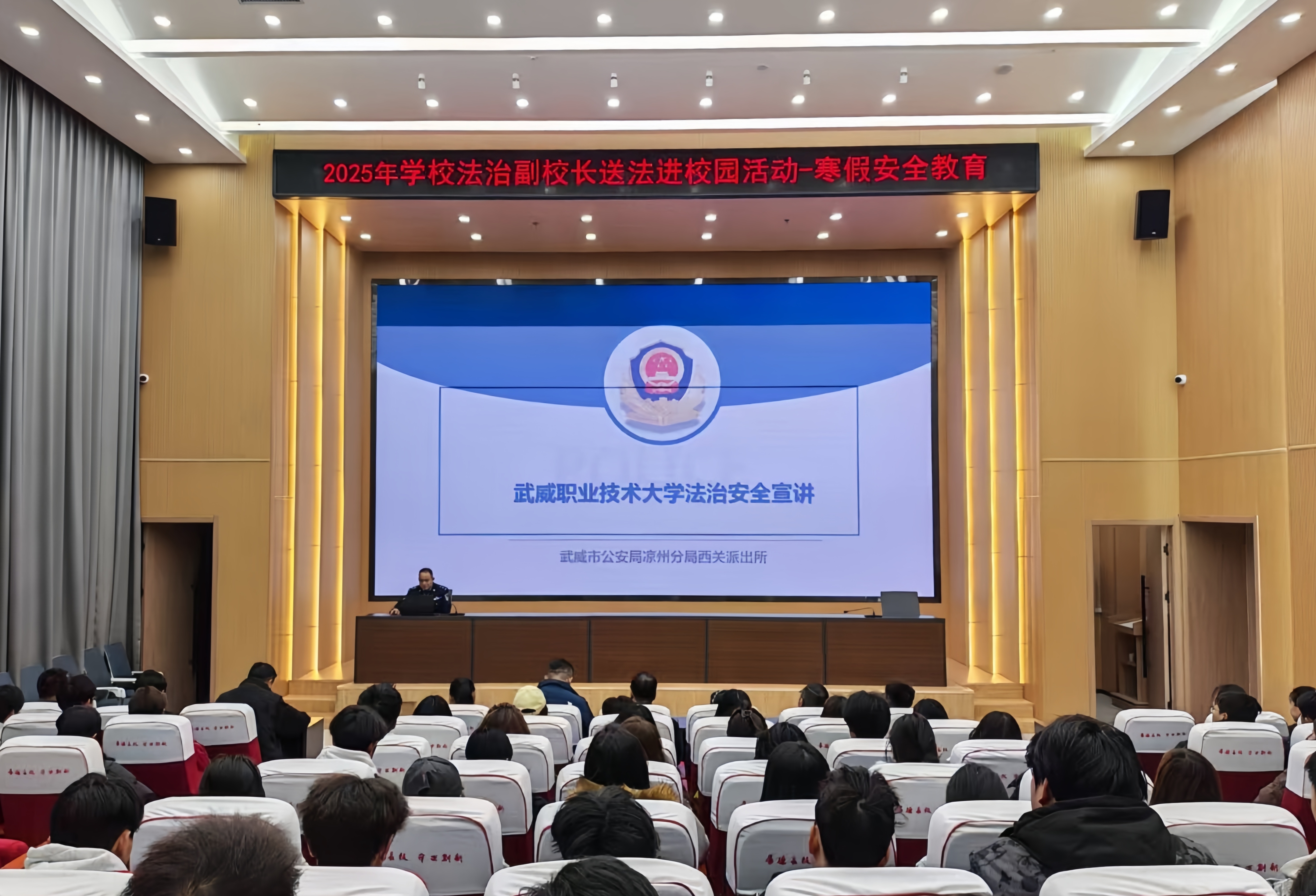 宣講中,法治副校長(zhǎng)結(jié)合大學(xué)生群體特點(diǎn)與校園常見(jiàn)涉法涉安全案例,圍繞一般治安事件、防范電信詐騙、人身財(cái)產(chǎn)安全、交通安全四大主題展開(kāi)詳細(xì)講解。針對(duì)毆打他人、盜竊、詐騙等12類(lèi)校園及周邊高發(fā)治安案件,副校長(zhǎng)逐一剖析案件特征,精準(zhǔn)解讀《治安管理處罰法》等相關(guān)法律法規(guī),明確違法犯罪行為的法律后果,告誡同學(xué)們堅(jiān)守法律底線,切勿因一時(shí)沖動(dòng)釀成大錯(cuò)。