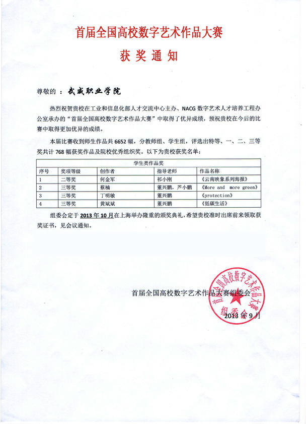 我院學生在全國高校數(shù)字藝術作品大賽中獲獎