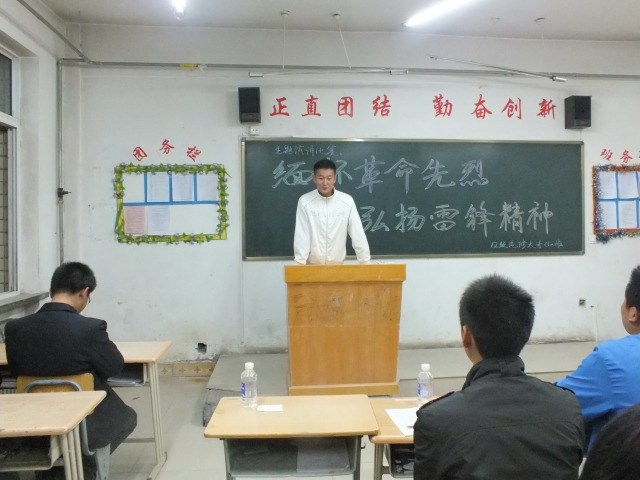 2013年3月18日晚,汽車(chē)工程系各班舉辦了以主題為“緬懷革命先烈,弘揚(yáng)雷鋒精神”的演講比賽,參加此次活動(dòng)的有汽車(chē)工程系老師,學(xué)生會(huì)干部和全體學(xué)生。