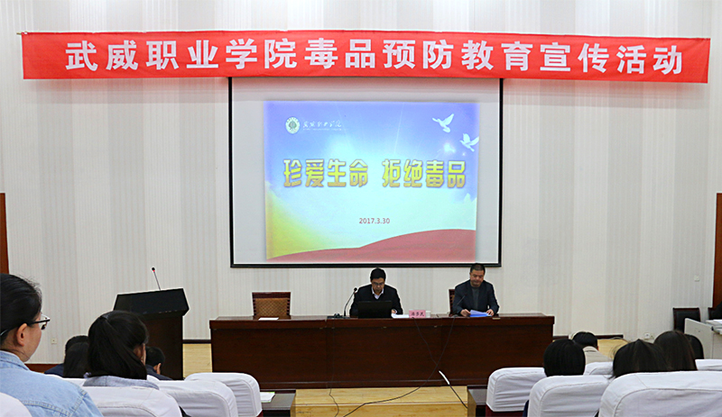3月30日下午,院團委聯(lián)合學生工作處、保衛(wèi)處在正德廳舉辦武威職業(yè)學院毒品預防教育宣傳活動,團市委書記潘多民出席活動并授課,學院各級團干部270多人參加了活動。活動由學生工作處處長王守云主持。
