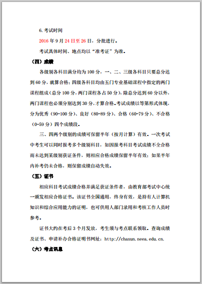 關(guān)于組織2016年9月全國計算機等級考試(NCRE)報名的通知