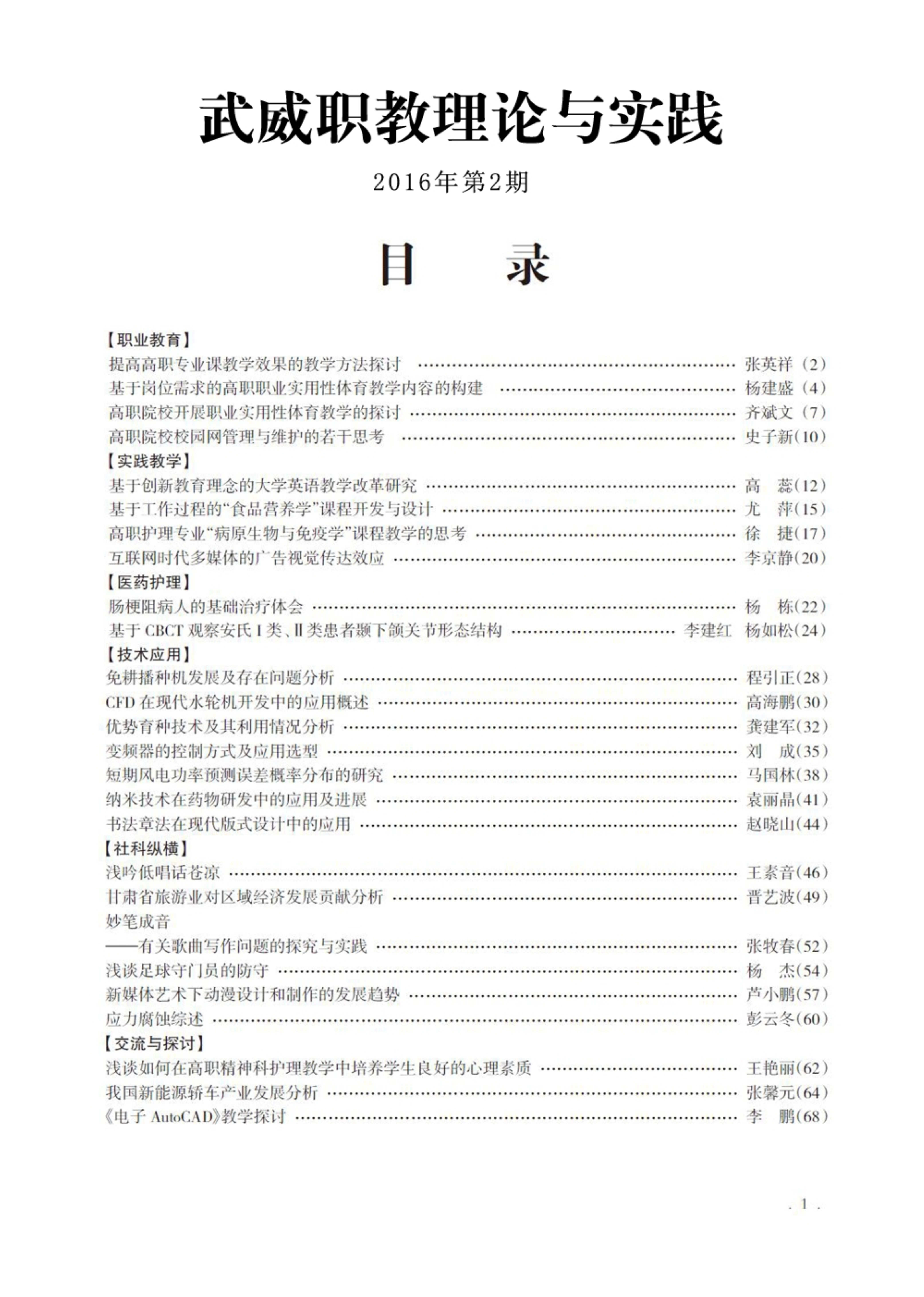 2016年第2期《武威職教理論與實踐》