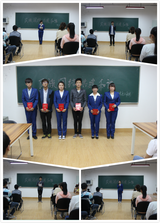 5月20日晚,由電子信息工程系舉辦的“謳歌民族團(tuán)結(jié)、建設(shè)和諧校園”主題演講比賽在尚德樓5樓順利舉行。系輔導(dǎo)員鄧偉華、團(tuán)總支書記唐宗舜及其他三位班主任老師擔(dān)任評委。