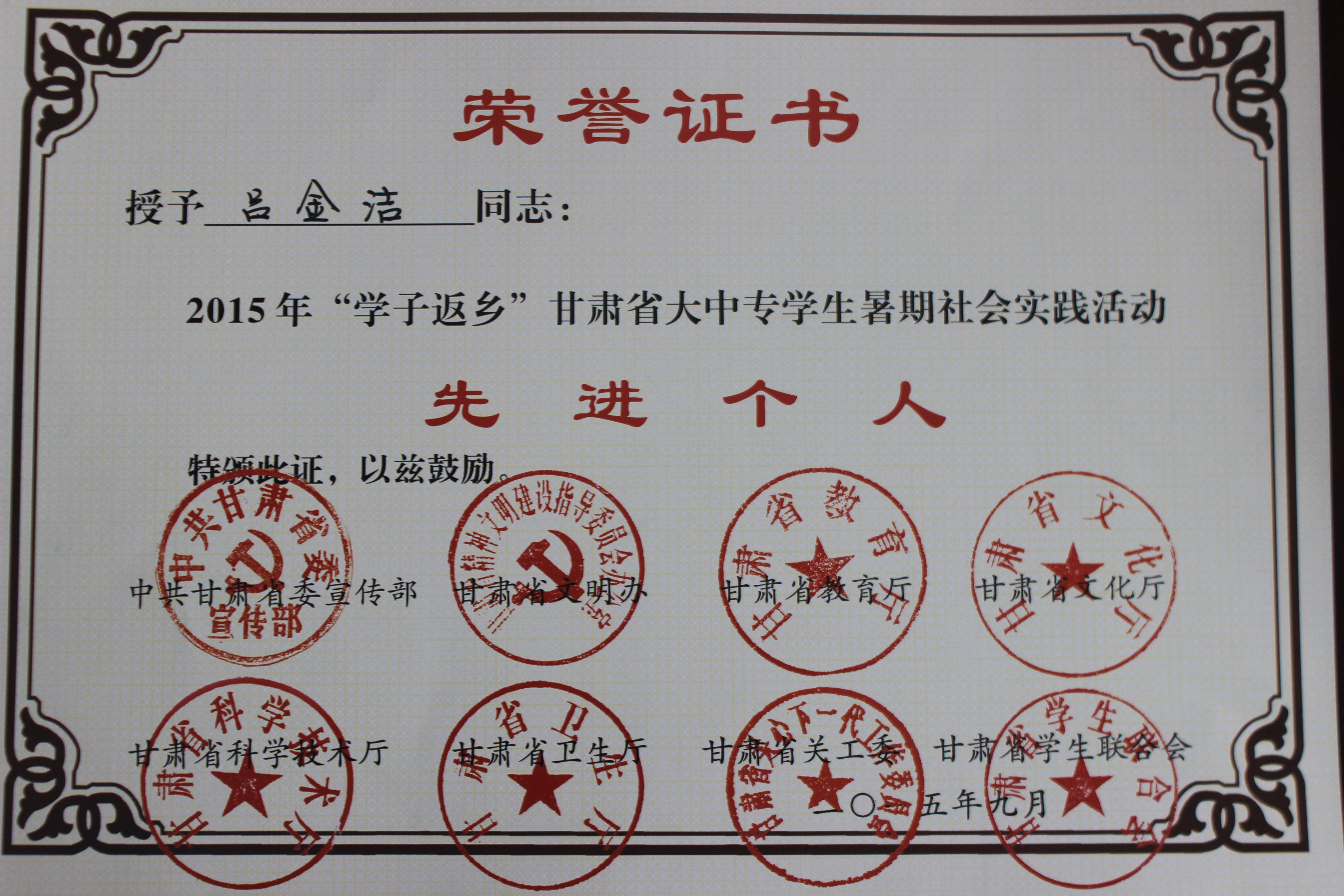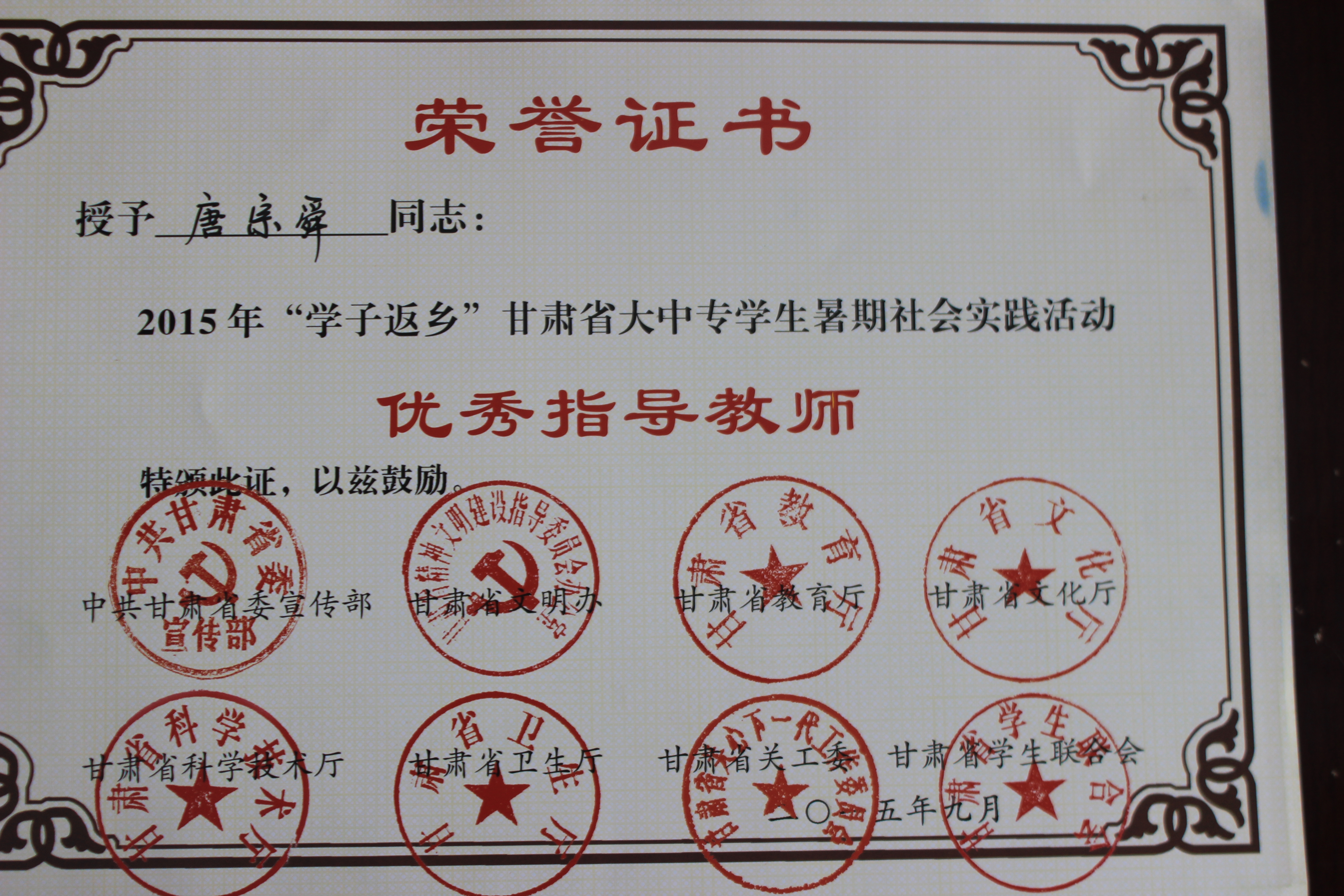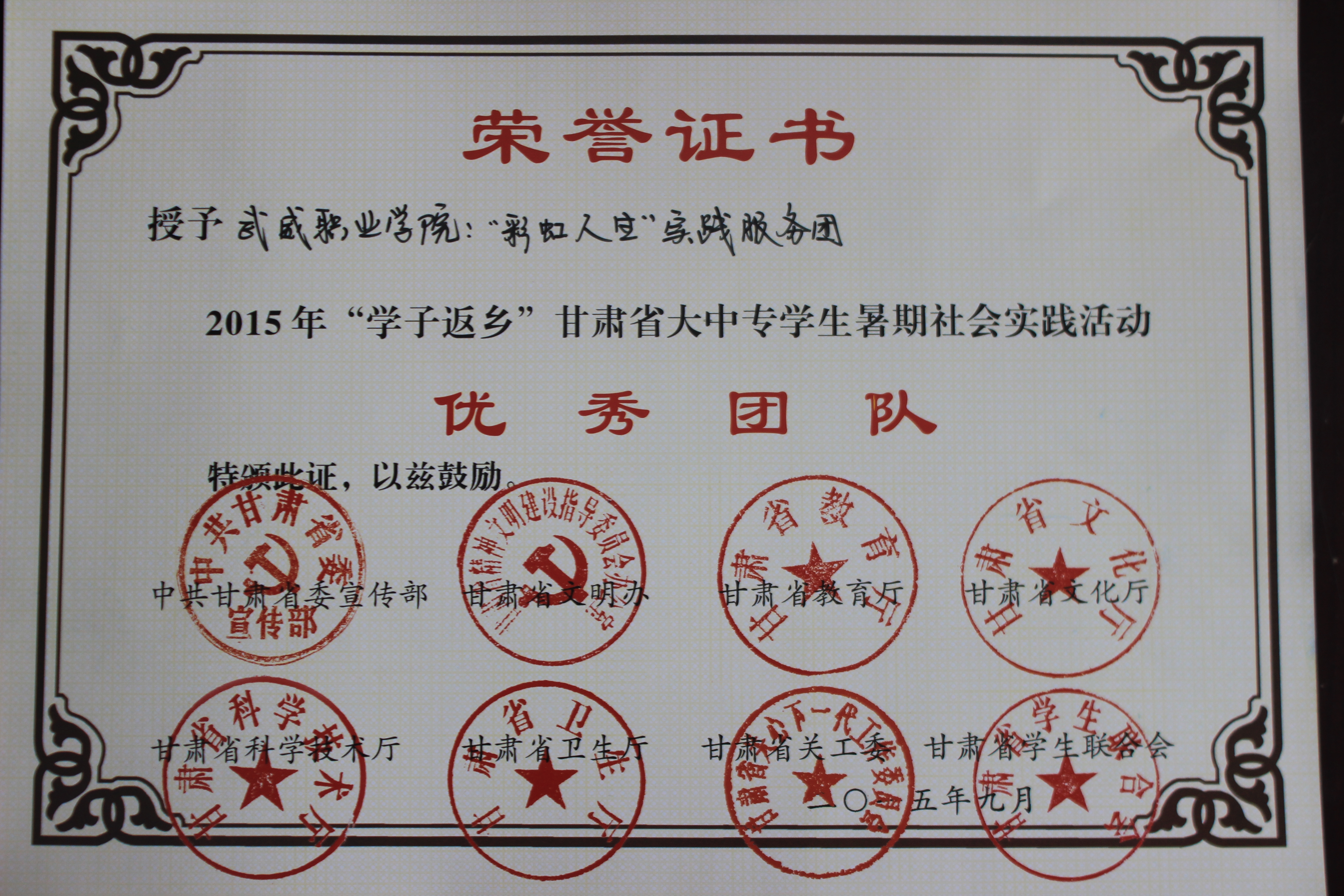 2015年“學(xué)子返鄉(xiāng)”甘肅省大中專(zhuān)學(xué)生暑期社會(huì)實(shí)踐活動(dòng)-優(yōu)秀團(tuán)隊(duì)