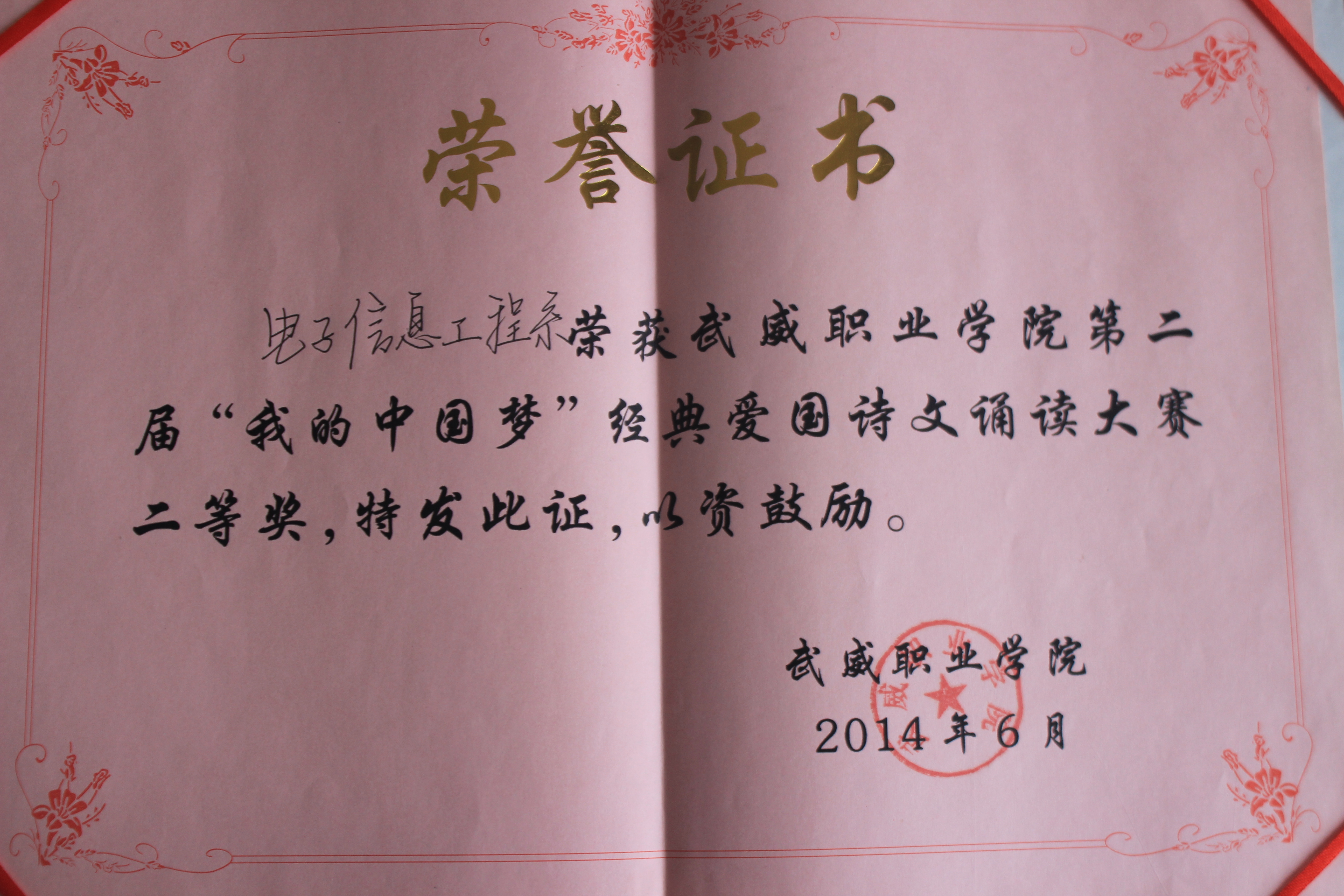 第二屆“我的中國(guó)夢(mèng)”經(jīng)典愛(ài)國(guó)詩(shī)文誦讀大賽-二等獎(jiǎng)