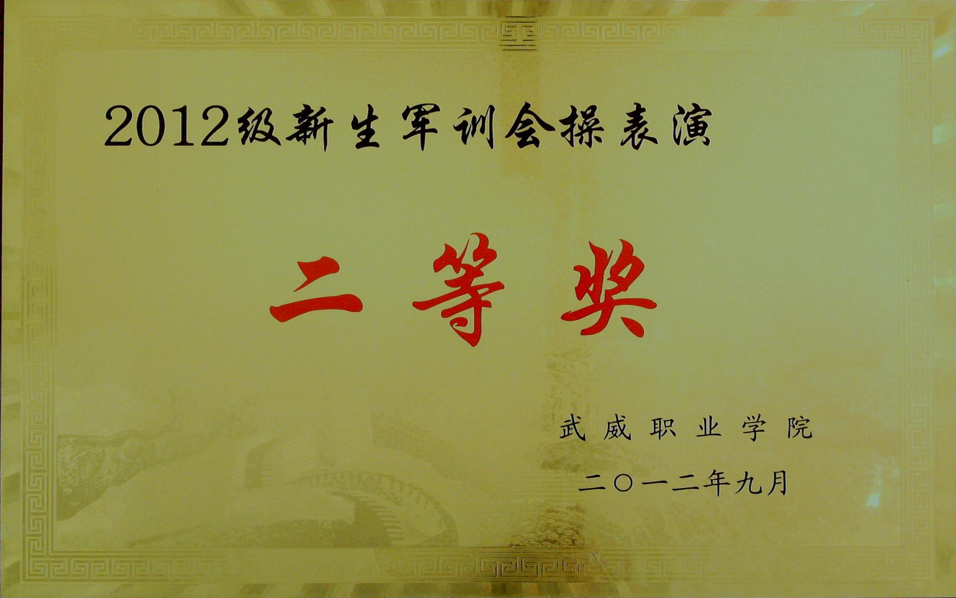 2012級新生軍訓(xùn)會操表演二等獎
