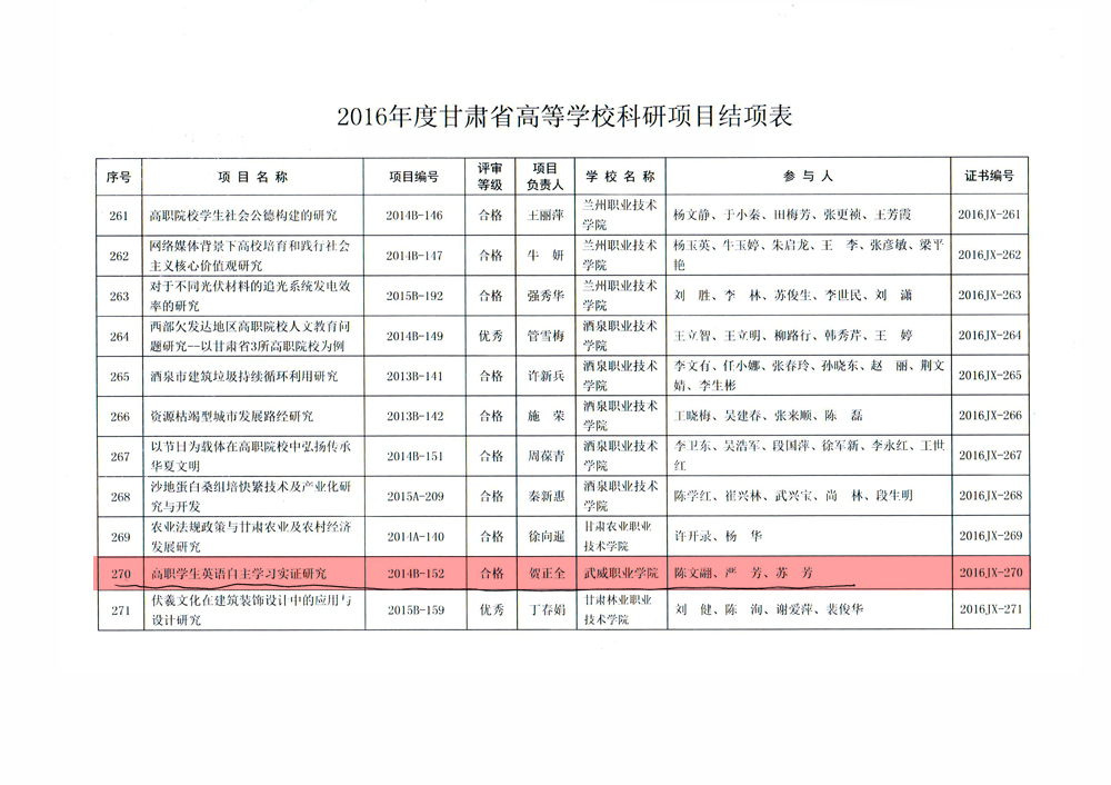 甘肅省教育廳關(guān)于2016年度甘肅省高等學(xué)??蒲许?xiàng)目結(jié)項(xiàng)情況的通知