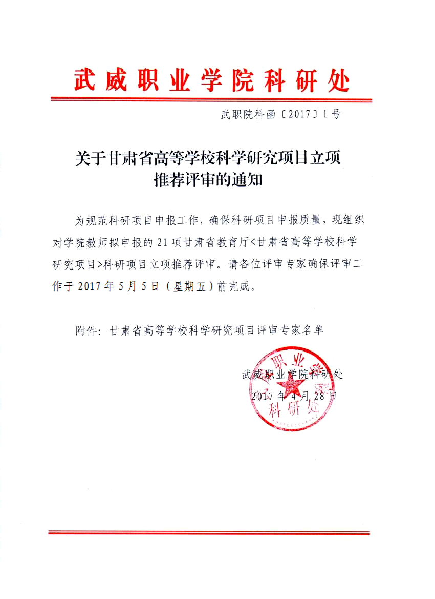 關(guān)于甘肅省高等學(xué)??茖W(xué)研究項目立項推薦評審的通知