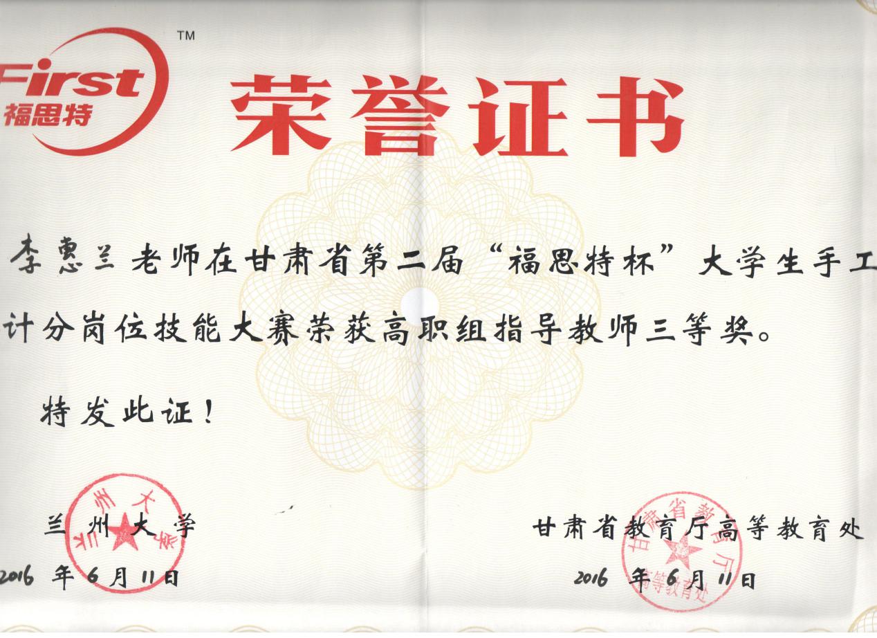 李惠蘭老師榮獲高職組指導(dǎo)教師三等獎(jiǎng)。