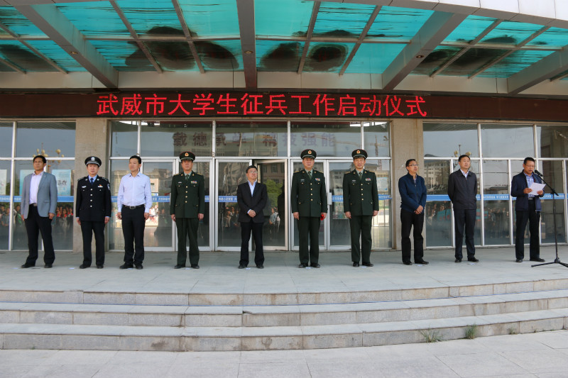 5月15日下午,武威市大學(xué)生征兵工作啟動(dòng)儀式在學(xué)院尚德樓北廣場(chǎng)隆重舉行。武威市政府副市長(zhǎng)胡細(xì)如和武威軍分區(qū)司令員萬(wàn)發(fā)中出席啟動(dòng)儀式并做了講話(huà),武威軍分區(qū)政委周小平、參謀長(zhǎng)孫武奇,市委宣傳部副部長(zhǎng)陳萬(wàn)能,涼州區(qū)委常委、常務(wù)副區(qū)長(zhǎng)高加志,市教育局督學(xué)張應(yīng)偉、市民政局雙擁辦副主任楊光鈺、市公安局副調(diào)研員陳振亞出席啟動(dòng)儀式。武威日?qǐng)?bào)社、廣播電視臺(tái)的媒體朋友和我院1000多名師生代表參加啟動(dòng)儀式,學(xué)院副院長(zhǎng)王永緒主持啟動(dòng)儀式。