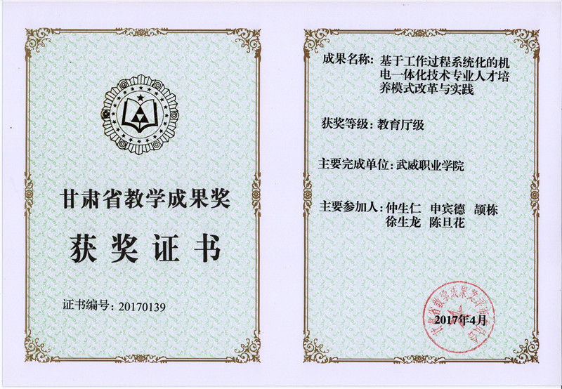 甘肅省教學(xué)成果獎(jiǎng)-基于工作過(guò)程系統(tǒng)化的機(jī)電一體化技術(shù)專業(yè)人才培養(yǎng)模式改革與實(shí)踐
