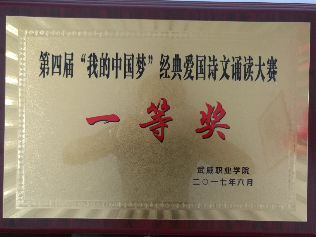 為進(jìn)一步推進(jìn)優(yōu)質(zhì)校建設(shè),加強(qiáng)學(xué)生思想素質(zhì)修養(yǎng),豐富學(xué)生課余文化生活,提高學(xué)生精神文明建設(shè),我系選派由15學(xué)10曹智娟,李濤濤,15學(xué)4王菲,16動(dòng)漫林露組成的參賽隊(duì)參加武威職業(yè)學(xué)院第四屆愛(ài)國(guó)詩(shī)文朗誦比賽決賽,比賽在學(xué)院正德廳舉行,我系參賽作品《她在云中笑》榮獲決賽一等獎(jiǎng)。同時(shí),對(duì)推進(jìn)學(xué)院優(yōu)質(zhì)校建設(shè)做出更大的努力。