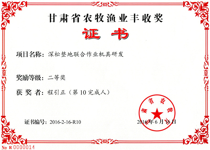 甘肅省農(nóng)牧漁業(yè)豐收獎-深松整地聯(lián)合作業(yè)機(jī)具研發(fā)