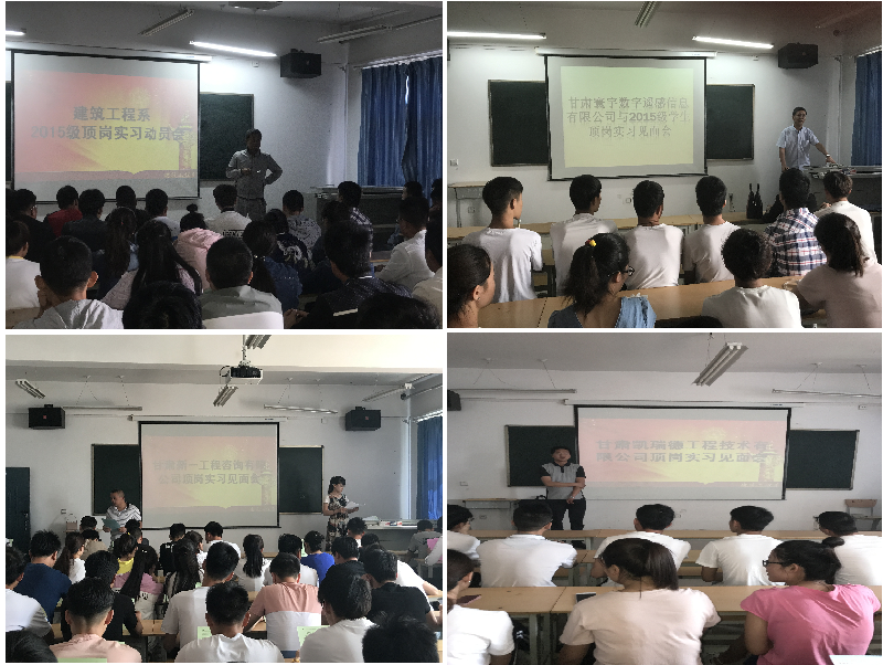6月8日至6月16日,甘肅寰宇數(shù)字遙感信息有限公司、甘肅新一工程咨詢有限公司、國誠集團(tuán)、蘭州凱瑞德工程有限公司、武威盛大集團(tuán)等實(shí)習(xí)接收單位,派專人來校,舉辦企業(yè)宣講會(huì),詳細(xì)地介紹了用人單位的管理制度、日常生活、工作崗位、薪酬待遇等,并與系上洽談了學(xué)生頂崗實(shí)習(xí)合作辦法、責(zé)任義務(wù)、安全保障、就業(yè)等涉及學(xué)生諸方面的合作細(xì)節(jié)。