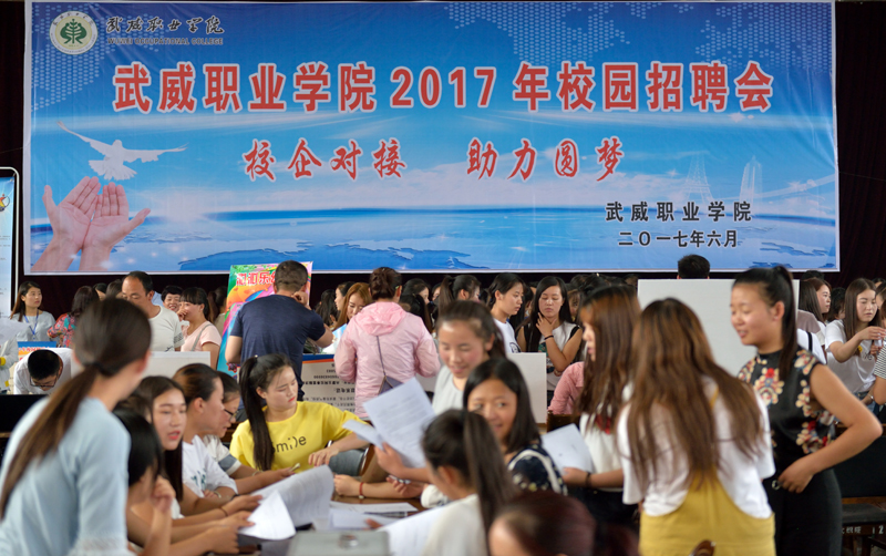 為切實做好學(xué)院畢業(yè)生就業(yè)工作,大力構(gòu)建畢業(yè)生與用人單位的交流平臺,積極為用人單位輸送應(yīng)用型人才,6月27日上午,在學(xué)院大禮堂舉行了我院2017年校園招聘會。此次招聘會參會企業(yè)共80多家,其中武威當(dāng)?shù)仄髽I(yè)12家,省內(nèi)企業(yè)33家,外地企業(yè)40多家。招聘會提供就業(yè)崗位1500多個,招聘崗位涉及了機械制造、信息工程、能源化工、醫(yī)藥衛(wèi)生、經(jīng)濟管理、學(xué)前教育、市場營銷、現(xiàn)代農(nóng)業(yè)等行業(yè),參加應(yīng)聘學(xué)生近3000人次,現(xiàn)場意向性簽約800多人。