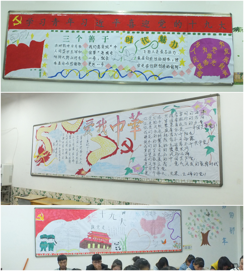 各班團(tuán)支部緊緊圍繞“學(xué)習(xí)青年習(xí)近平,喜迎黨的十九大”這一主題,精心的設(shè)計(jì),圖文并茂,內(nèi)容豐富,制作完成了形式多樣的黑板報(bào)。由系團(tuán)總支對各班團(tuán)支部制作的黑板報(bào)進(jìn)行了檢查評比。經(jīng)過現(xiàn)場打分,最終評定16級中藥學(xué)2班、16級藥學(xué)3班和17級中藥學(xué)2班為黑板報(bào)制作優(yōu)秀團(tuán)支部。