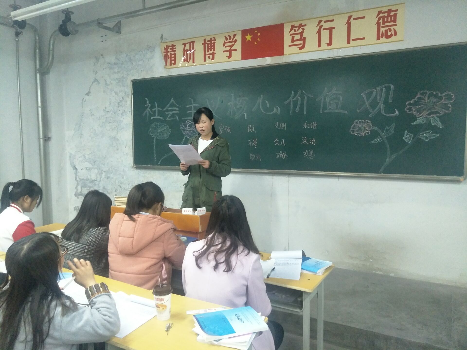 ?根據(jù)藥學(xué)系對社會主義核心價值觀主題宣傳教育創(chuàng)建工作的安排,11月6日,利用晚自習(xí),17級藥學(xué)5班召開主題班會,深入學(xué)習(xí)宣傳社會主義核心價值觀的概念內(nèi)涵、發(fā)展歷程、價值意義、基本原則、踐行路徑、實(shí)踐活動和“24字人知人曉”等內(nèi)容。同時,將“24字內(nèi)容”在教室、宿舍張貼宣傳,做到社會主義核心價值觀進(jìn)教室、進(jìn)宿舍、進(jìn)頭腦。通過學(xué)習(xí),對“24字人知人曉”工程做到了班級全覆蓋,班級學(xué)生對社會主義核心價值觀內(nèi)涵的認(rèn)識和理解進(jìn)一步加深。今后,將根據(jù)系上安排,不斷將培育和踐行社會主義核心價值觀工作引向深入。