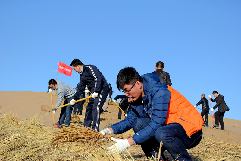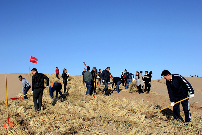 直屬附屬醫(yī)院組織干部職工赴八十里大沙參加義務(wù)壓沙治沙勞動