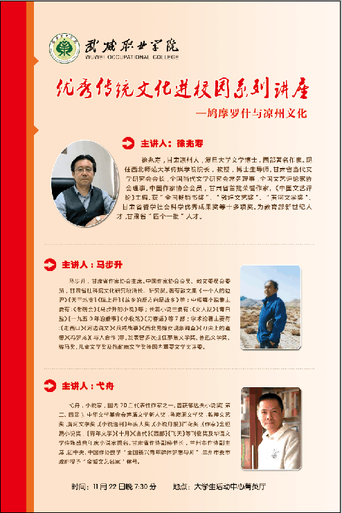 武威職業(yè)學(xué)院優(yōu)秀傳統(tǒng)文化進(jìn)校園系列講座今晚開講